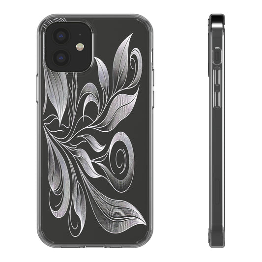 Transparent Curved Lines and Petals Iphone Case Compatible With Iphone 16 15 14 - Clear Phone Cover