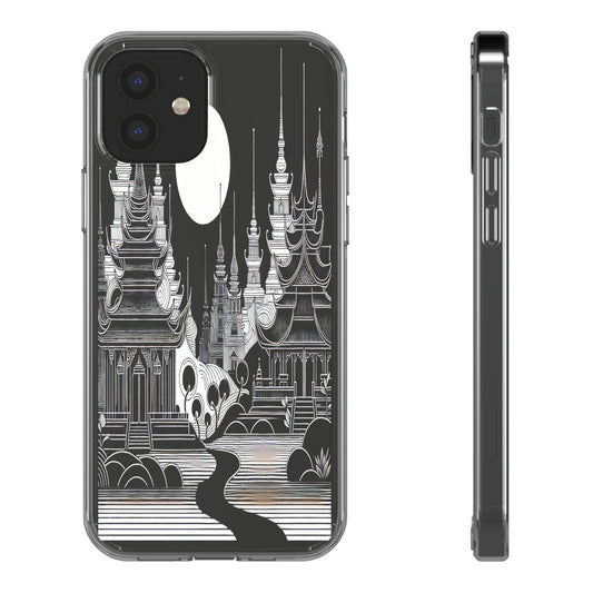 Transparent Temple Silhouette Under Bright Moon Iphone Case Compatible With Iphone 16 15 14 - Clear Phone Cover