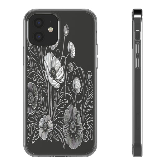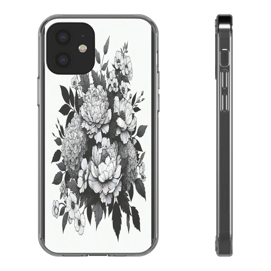 Transparent Floral Arrangement in Black and White Iphone Case Compatible With Iphone 16 15 14 - Clear Phone Cover