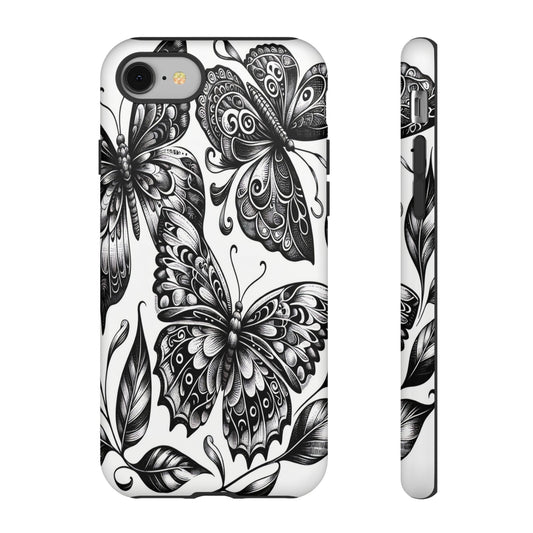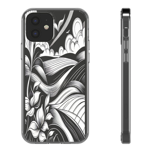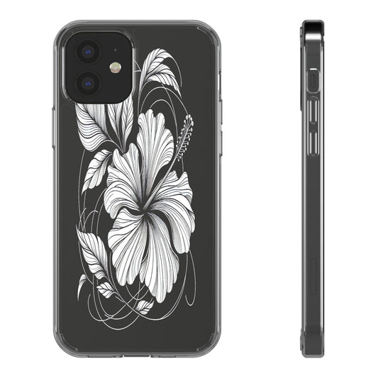 Transparent Hibiscus Design in Black and White Iphone Case Compatible With Iphone 16 15 14 - Clear Phone Cover