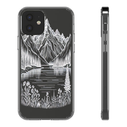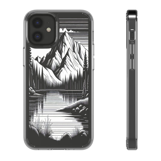 Transparent Majestic Landscape in Black and White Iphone Case Compatible With Iphone 16 15 14 - Clear Phone Cover