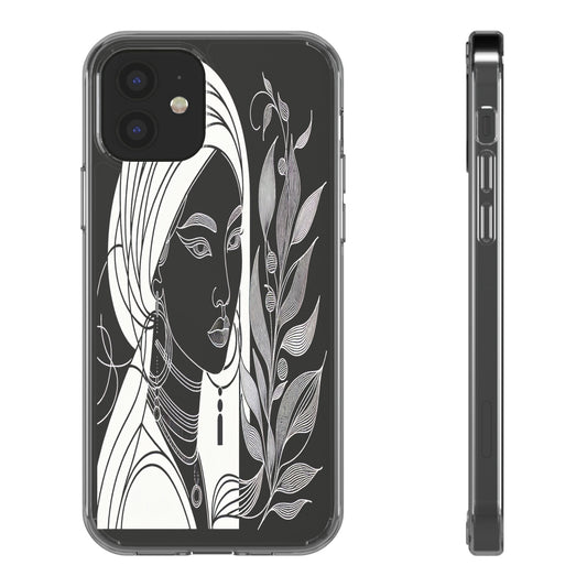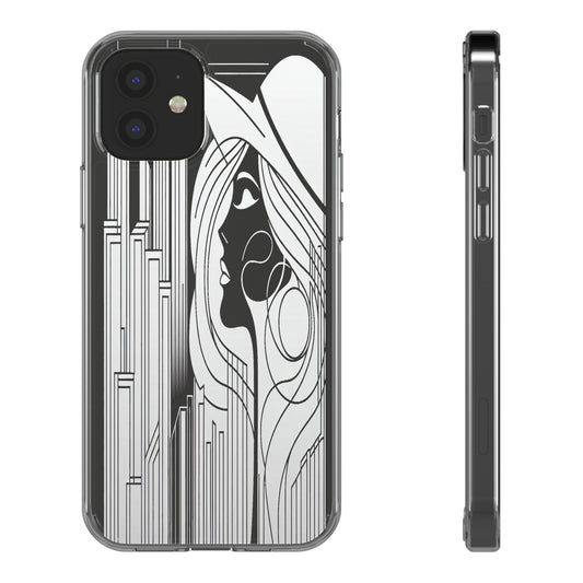 Transparent Mystical Portrait in Lines Iphone Case Compatible With Iphone 16 15 14 - Clear Phone Cover