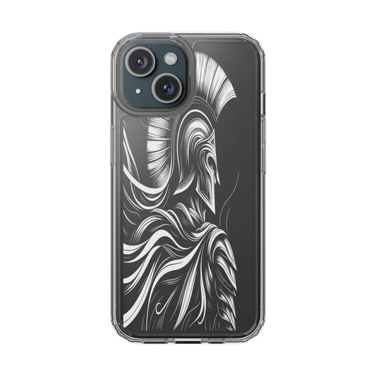 Transparent Helmeted Sentinel in Monochrome Motion Iphone Case Compatible With Iphone 16 15 14 - Clear Phone Cover