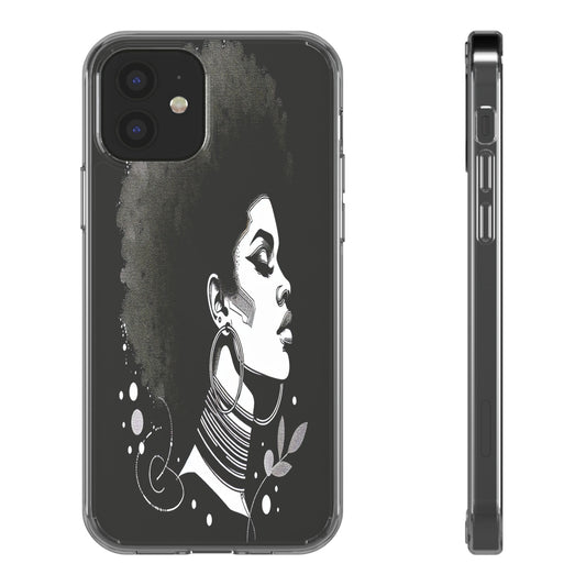Transparent Afro Goddess Portrait Iphone Case Compatible With Iphone 16 15 14 - Clear Phone Cover
