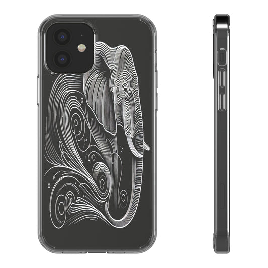 Transparent Elephant in Flowing Lines Iphone Case Compatible With Iphone 16 15 14 - Clear Phone Cover
