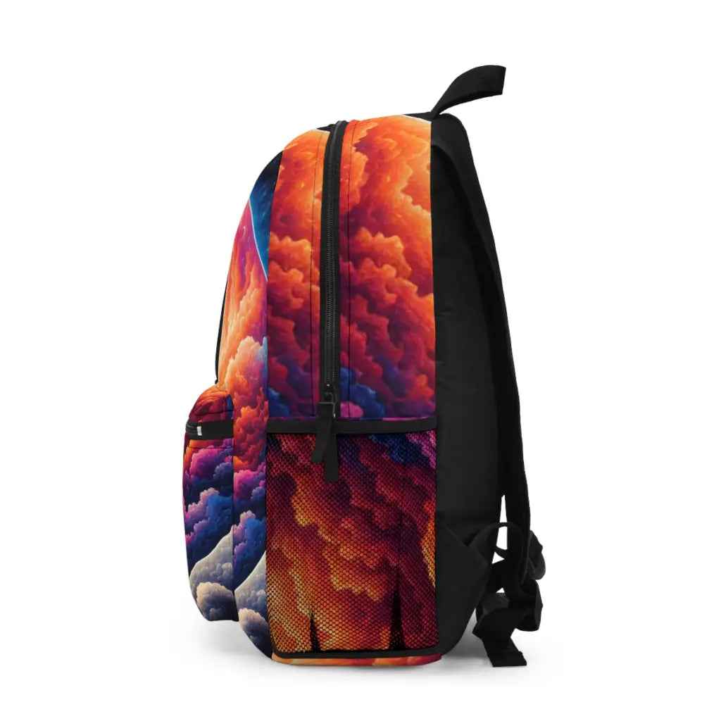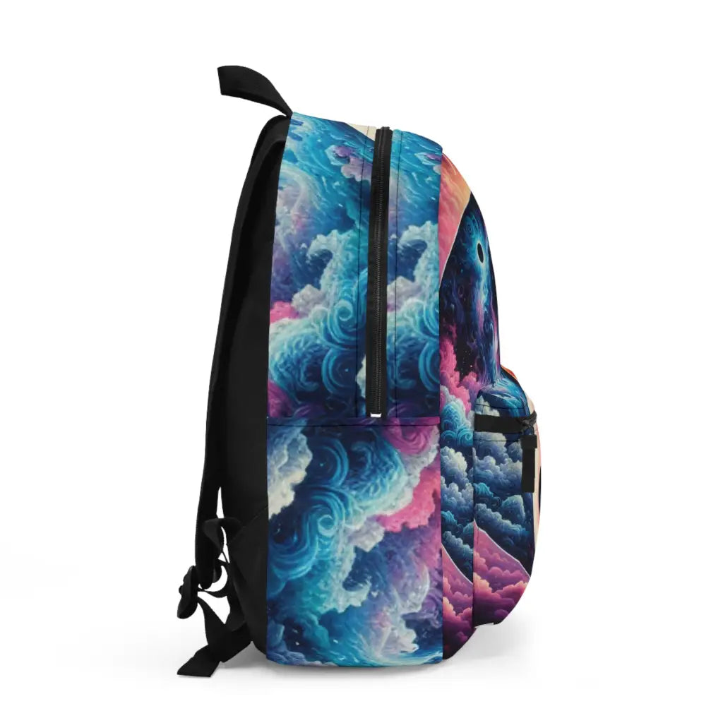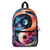 A mystical yin-yang symbol melds cosmic night and vibrant sunset skies. Swirling clouds and ethereal hues frame a luminous moon, evoking harmony between opposing forces. Introducing the ultimate backpack for fashion-forward adventurers! Our backpack boasts a striking textile design that will make a statement wherever you go. With its durable construction and spacious compartments, it is perfect for carrying all your essentials. Get ready to turn heads and stay organized with our backpack. #textiledesign #backpack #fashionforward #adventure #durable #spacious #statementpiece #organized #essentials #travel #explore