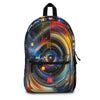 A mesmerizing fusion of cosmic and geometric elements, this artwork intertwines swirling galaxies and vibrant hues. Celestial orbs and intricate, layered lines evoke a dynamic sense of movement, creating a celestial dance that is both structured and ethereal, capturing the essence of an abstract universe. Introducing the ultimate backpack for fashion-forward adventurers! Our backpack boasts a striking textile design that will make a statement wherever you go. With its durable construction and spacious compartments, it is perfect for carrying all your essentials. Get ready to turn heads and stay organized with our backpack. #textiledesign #backpack #fashionforward #adventure #durable #spacious #statementpiece #organized #essentials #travel #explore
