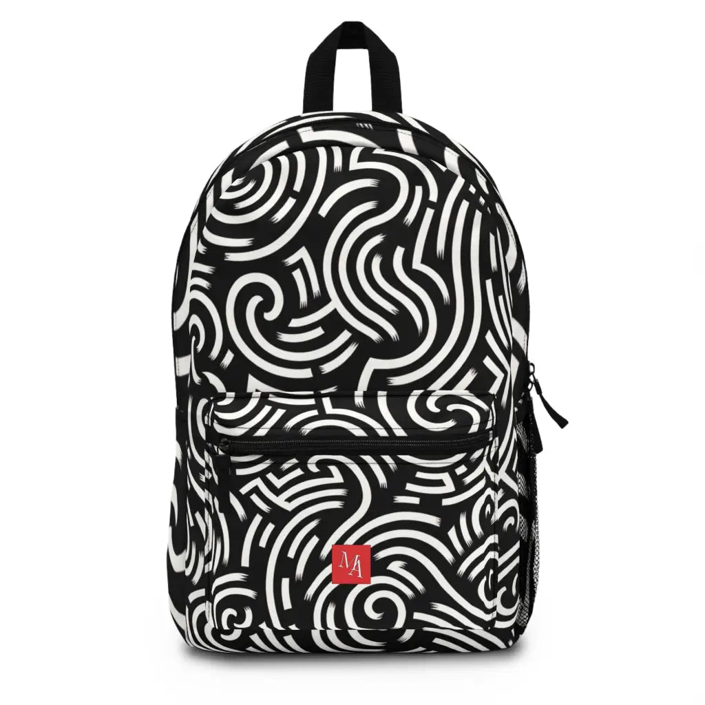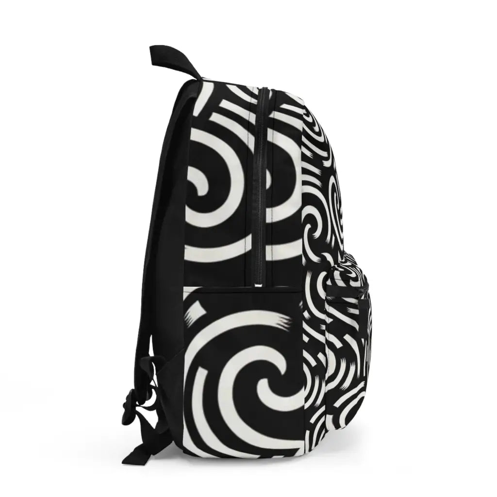 Fluid, abstract lines meander across a dark background, creating an organic labyrinth. The design's contrast and simplicity evoke a sense of movement and mystery, inviting interpretation and exploration. Introducing the ultimate backpack for fashion-forward adventurers! Our backpack boasts a striking textile design that will make a statement wherever you go. With its durable construction and spacious compartments, it is perfect for carrying all your essentials. Get ready to turn heads and stay organized with our backpack. #textiledesign #backpack #fashionforward #adventure #durable #spacious #statementpiece #organized #essentials #travel #explore