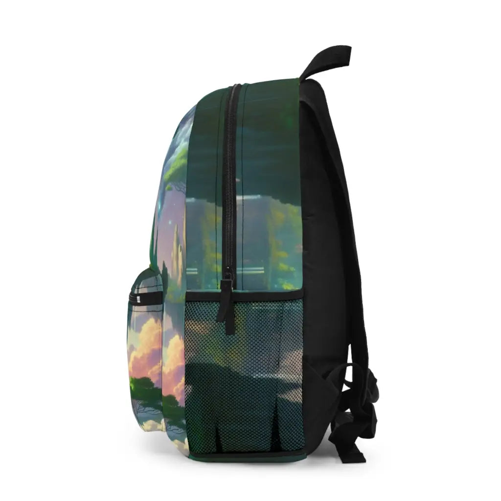 Floating islands glisten above ethereal clouds, each crowned with cascading waterfalls and lush greenery. A celestial sky, filled with stars, enhances the dreamlike, magical atmosphere. These surreal landscapes blend natural beauty and fantasy, evoking a sense of wonder and adventure. Introducing the ultimate backpack for fashion-forward adventurers! Our backpack boasts a striking textile design that will make a statement wherever you go. With its durable construction and spacious compartments, it is perfect for carrying all your essentials. Get ready to turn heads and stay organized with our backpack. #textiledesign #backpack #fashionforward #adventure #durable #spacious #statementpiece #organized #essentials #travel #explore