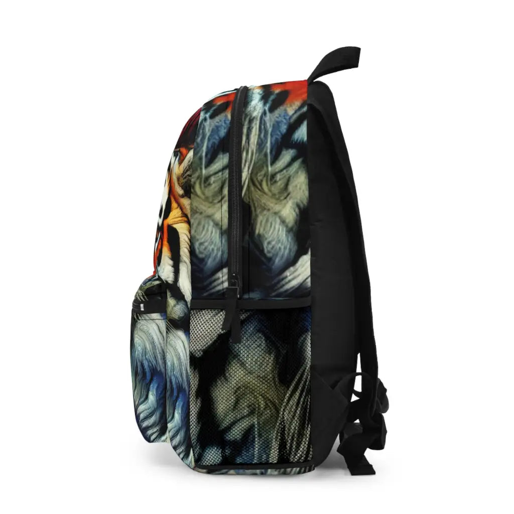 Vibrant tiger with a spectrum of fiery hues prowls amidst surreal pink trees. The artwork's intense colors and textured details create a fantastical, dreamlike jungle atmosphere, capturing the imagination. Introducing the ultimate backpack for fashion-forward adventurers! Our backpack boasts a striking textile design that will make a statement wherever you go. With its durable construction and spacious compartments, it is perfect for carrying all your essentials. Get ready to turn heads and stay organized with our backpack. #textiledesign #backpack #fashionforward #adventure #durable #spacious #statementpiece #organized #essentials #travel #explore