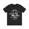 This image features a whimsical, abstract face crafted in bold geometric patterns and vibrant colors, forming a circular shape. The fragmented design creates a modern, stained glass effect that blends surrealism with vivid, dynamic creativity.. This classic unisex jersey short sleeve tee fits like a well-loved favorite. Soft cotton and quality print make users fall in love with it over and over again. These t-shirts have-ribbed knit collars to bolster shaping. The shoulders are tapered for a better fit over time. Dual side seams hold the garment's shape for longer.