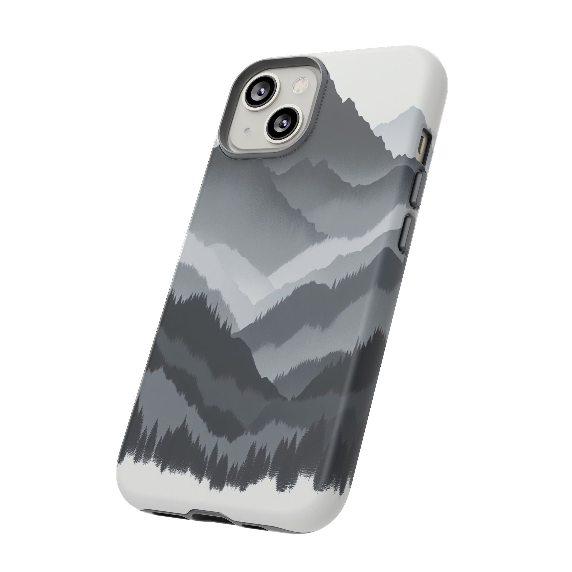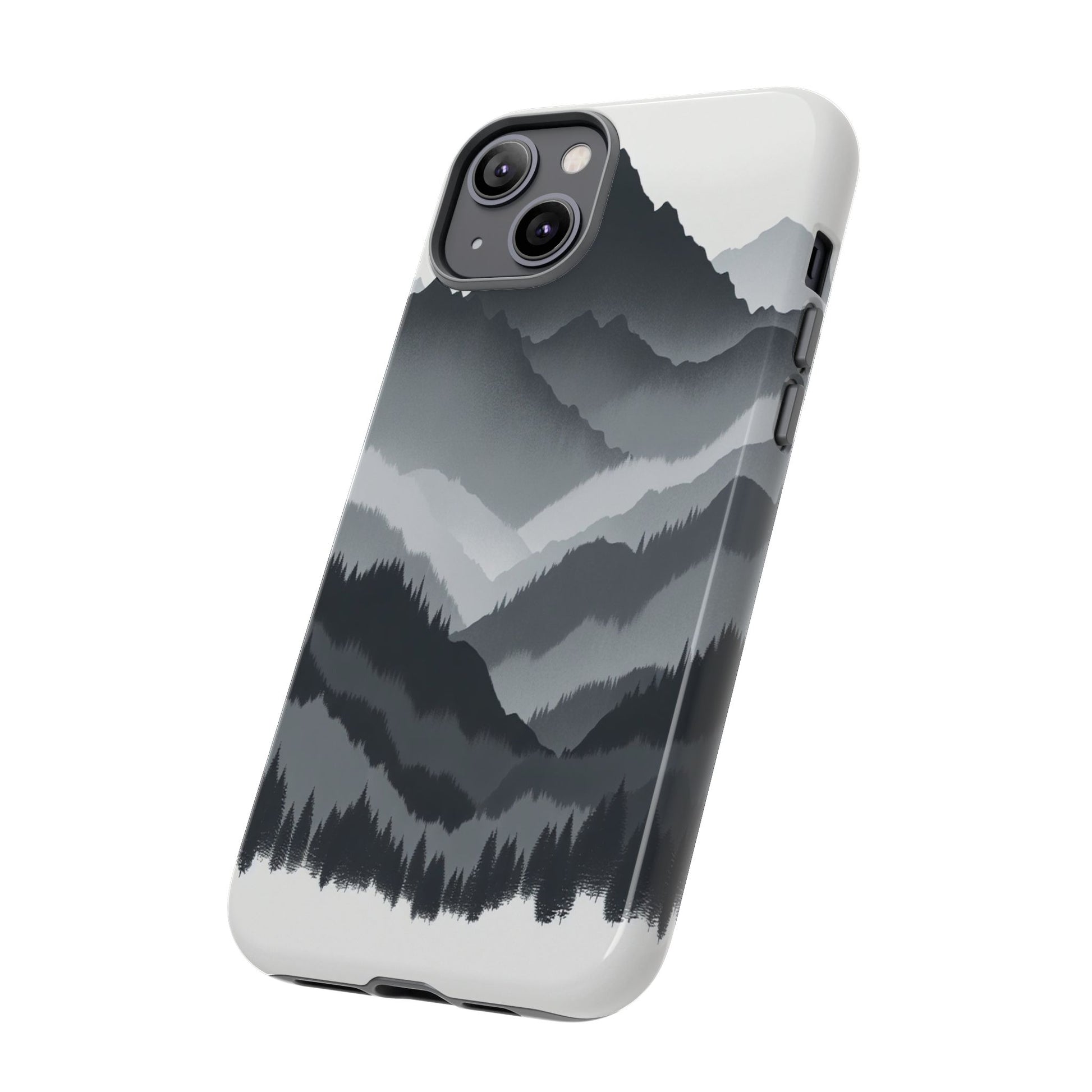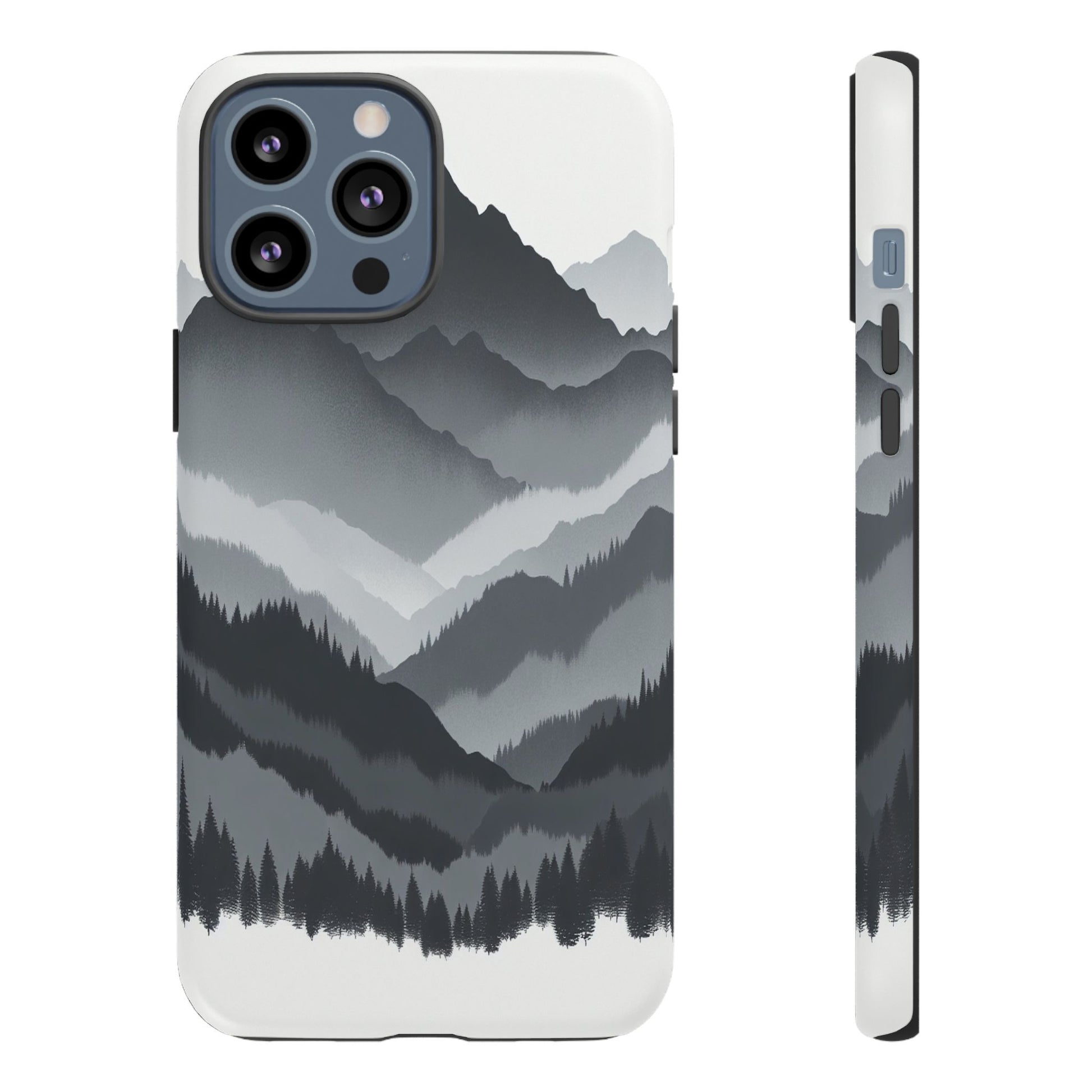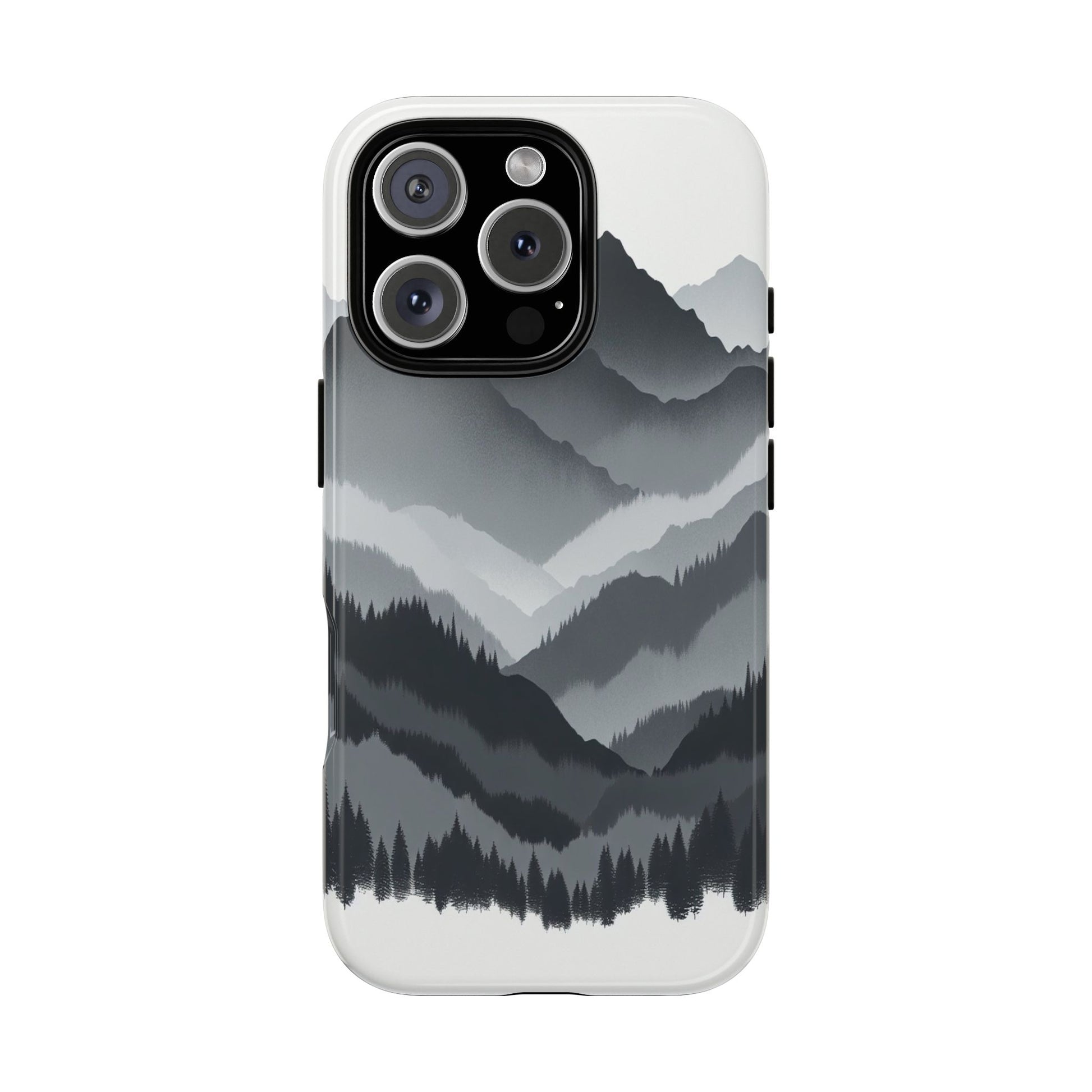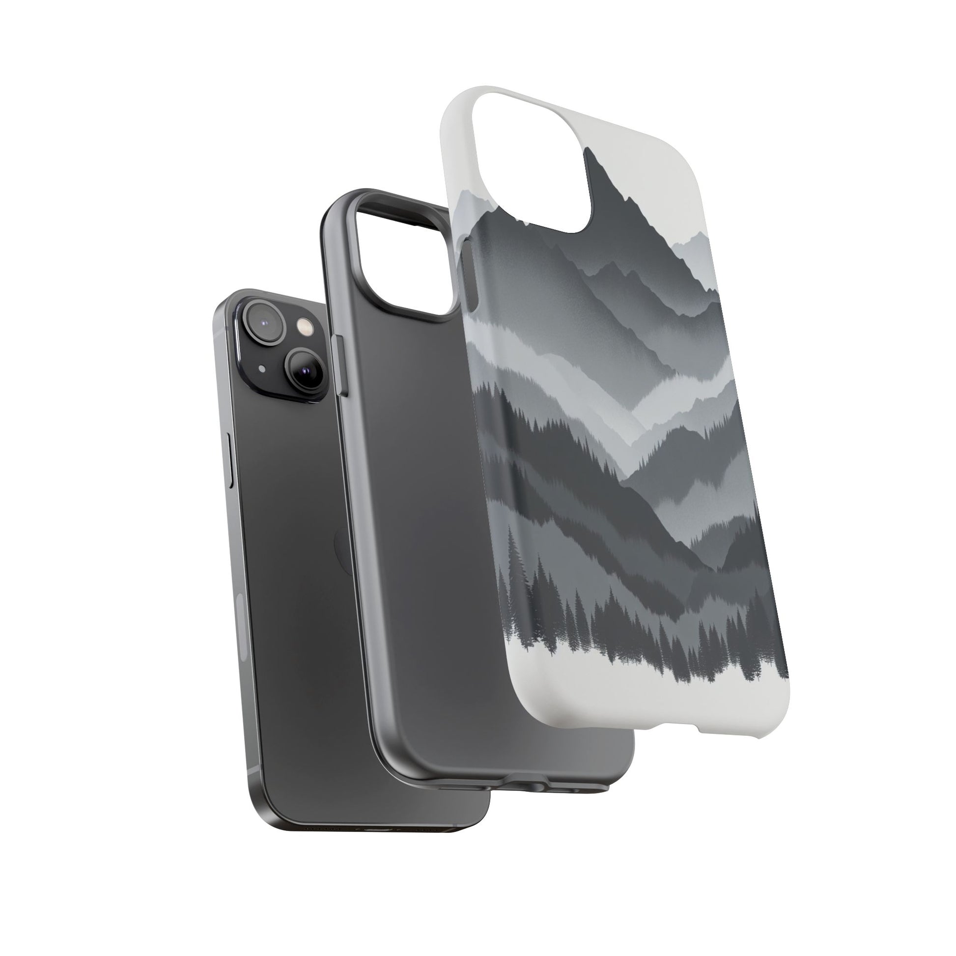 Monochromatic mountain layers seamlessly blend into one another, creating a serene, misty landscape. The minimalist grayscale palette accentuates the depth and tranquility of the scene, while the repetitive, flowing forms evoke a peaceful rhythm and timeless beauty. iPhone, Samsung Galaxy, and Google Pixel devices with premium-quality custom protective phone cases. Every case has double layers for extra durability and protection while the clear, open ports stay out of your way when it comes to charging. The outer polycarbonate shell will resist daily impacts. Choose between matte or glossy finish and enjoy adding a unique touch to your phone with our custom protective phone cases sourced from Korea.