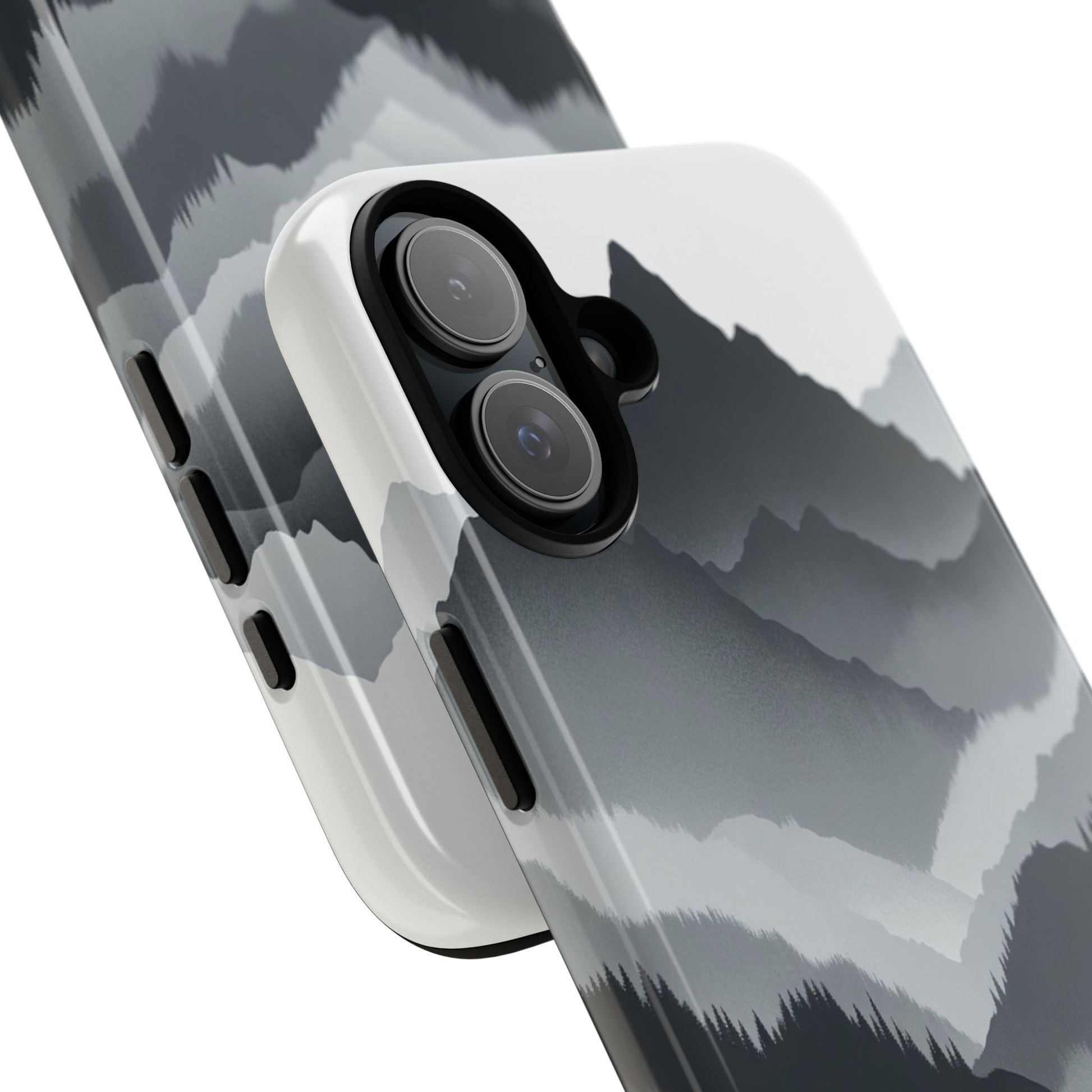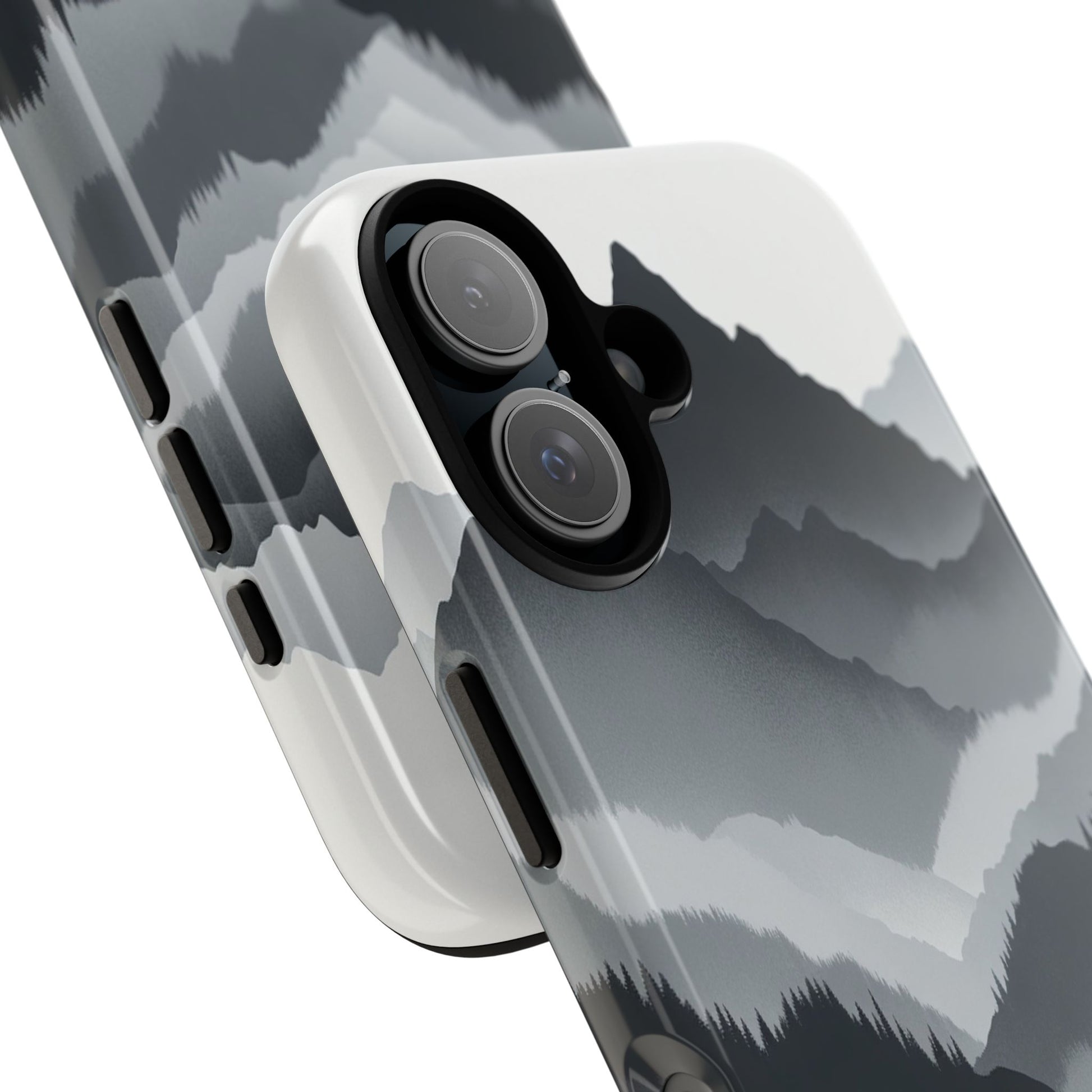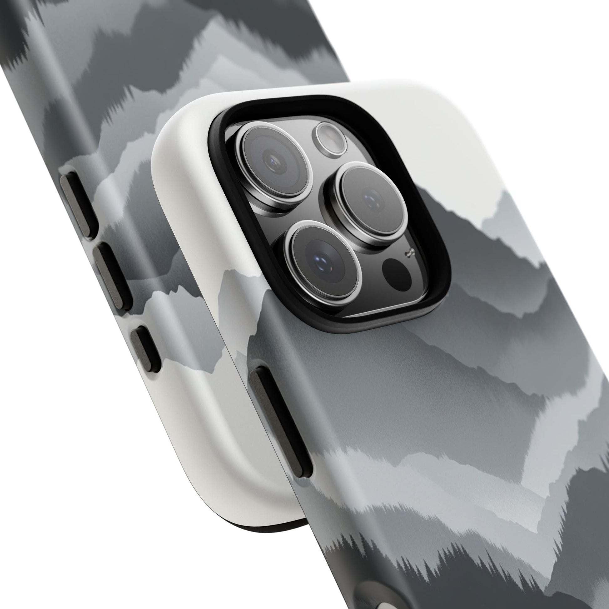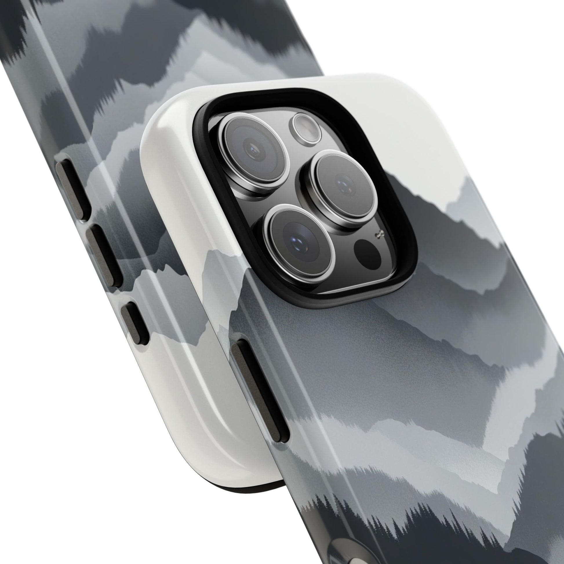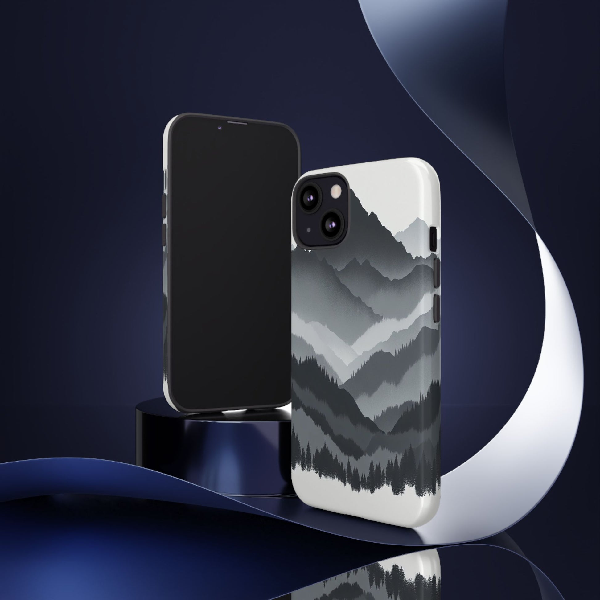 Monochromatic mountain layers seamlessly blend into one another, creating a serene, misty landscape. The minimalist grayscale palette accentuates the depth and tranquility of the scene, while the repetitive, flowing forms evoke a peaceful rhythm and timeless beauty. iPhone, Samsung Galaxy, and Google Pixel devices with premium-quality custom protective phone cases. Every case has double layers for extra durability and protection while the clear, open ports stay out of your way when it comes to charging. The outer polycarbonate shell will resist daily impacts. Choose between matte or glossy finish and enjoy adding a unique touch to your phone with our custom protective phone cases sourced from Korea.