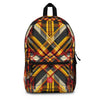 This image features a kaleidoscopic array of various tartan patterns, symmetrically arranged to form an intricate, visually captivating mosaic, boldly playing with tradition and symmetry. Introducing the ultimate backpack for fashion-forward adventurers! Our backpack boasts a striking textile design that will make a statement wherever you go. With its durable construction and spacious compartments, it is perfect for carrying all your essentials. Get ready to turn heads and stay organized with our backpack. #textiledesign #backpack #fashionforward #adventure #durable #spacious #statementpiece #organized #essentials #travel #explore