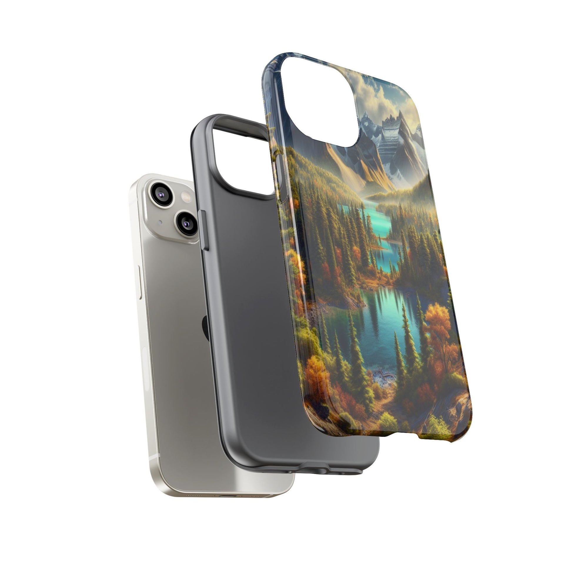A vibrant, mystical landscape features majestic mountains, crystal-clear turquoise lakes, and lush forests bathed in golden sunlight, blending realism and fantasy in a breathtaking autumn tapestry. iPhone, Samsung Galaxy, and Google Pixel devices with premium-quality custom protective phone cases. Every case has double layers for extra durability and protection while the clear, open ports stay out of your way when it comes to charging. The outer polycarbonate shell will resist daily impacts. Choose between matte or glossy finish and enjoy adding a unique touch to your phone with our custom protective phone cases sourced from Korea.