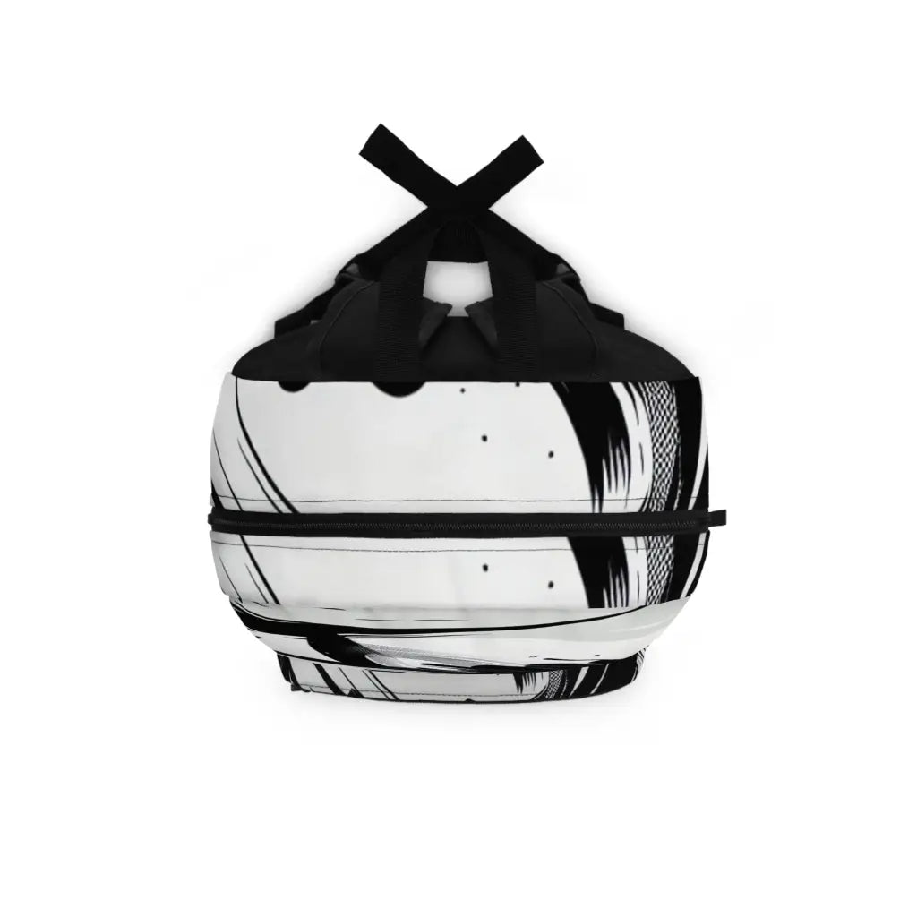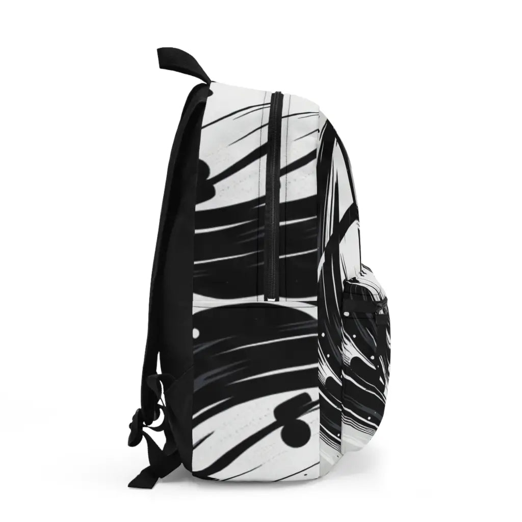 Energetic black brushstrokes dance chaotically across the canvas, evoking the spontaneous intensity of abstract calligraphy. A central oval void punctuates the composition, creating a dynamic interplay between form and emptiness, echoing the vibrancy of modern graffiti and traditional ink artistry. Introducing the ultimate backpack for fashion-forward adventurers! Our backpack boasts a striking textile design that will make a statement wherever you go. With its durable construction and spacious compartments, it is perfect for carrying all your essentials. Get ready to turn heads and stay organized with our backpack. #textiledesign #backpack #fashionforward #adventure #durable #spacious #statementpiece #organized #essentials #travel #explore