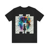 A silhouette of a girl holding colorful balloons stands against a vibrant, abstract backdrop of paint splashes and butterflies. The intersecting lines and bold hues create a dynamic, whimsical atmosphere, blending innocence with artistic chaos.. This classic unisex jersey short sleeve tee fits like a well-loved favorite. Soft cotton and quality print make users fall in love with it over and over again. These t-shirts have-ribbed knit collars to bolster shaping. The shoulders are tapered for a better fit over time. Dual side seams hold the garment's shape for longer.
