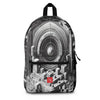 An intricate geometric masterpiece, this grayscale artwork blends cubes, spheres, and concentric patterns, creating a multidimensional labyrinth. Its precision and depth evoke a sense of cosmic architecture, balancing order and chaos in a visually stunning symphony of shapes. Introducing the ultimate backpack for fashion-forward adventurers! Our backpack boasts a striking textile design that will make a statement wherever you go. With its durable construction and spacious compartments, it is perfect for carrying all your essentials. Get ready to turn heads and stay organized with our backpack. #textiledesign #backpack #fashionforward #adventure #durable #spacious #statementpiece #organized #essentials #travel #explore