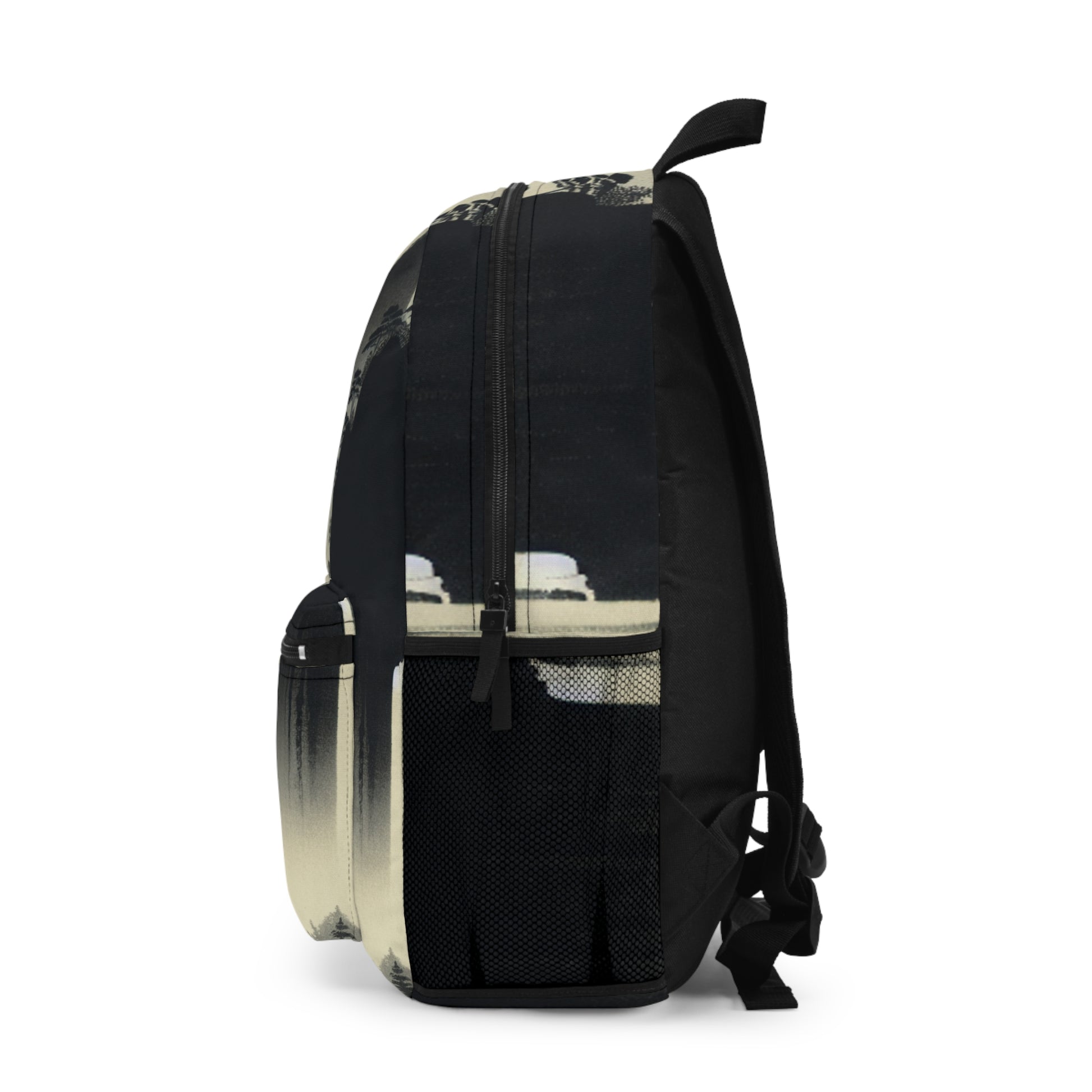 This black-and-white artwork captures serene mountains shrouded in mist, highlighted by a full moon and cascading waterfalls. The elegant composition evokes traditional Japanese ink wash painting, with artfully silhouetted trees adding depth and harmony to the atmospheric scene. Introducing the ultimate backpack for fashion-forward adventurers! Our backpack boasts a striking textile design that will make a statement wherever you go. With its durable construction and spacious compartments, it is perfect for carrying all your essentials. Get ready to turn heads and stay organized with our backpack. #textiledesign #backpack #fashionforward #adventure #durable #spacious #statementpiece #organized #essentials #travel #explore