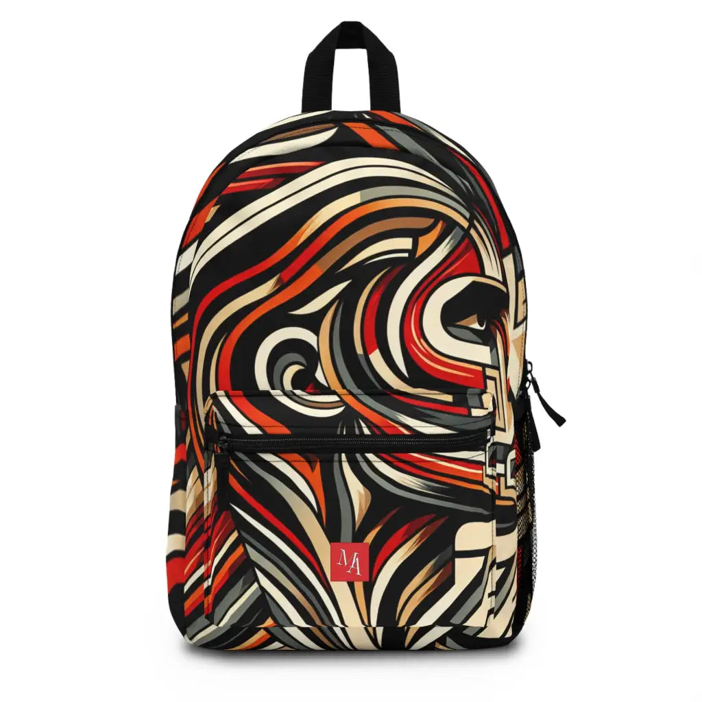 This vibrant artwork blends abstract geometry with bold, contrasting colors, capturing a silhouette against dynamic red and black waves. The intricate face detail adds an urban, tribal fusion, creating a captivating visual narrative. Introducing the ultimate backpack for fashion-forward adventurers! Our backpack boasts a striking textile design that will make a statement wherever you go. With its durable construction and spacious compartments, it is perfect for carrying all your essentials. Get ready to turn heads and stay organized with our backpack. #textiledesign #backpack #fashionforward #adventure #durable #spacious #statementpiece #organized #essentials #travel #explore