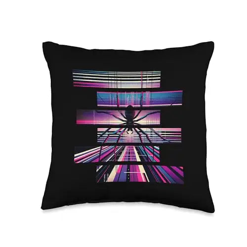 Arachnid Aura: Spider on a Radiant Digital Web Throw Pillow