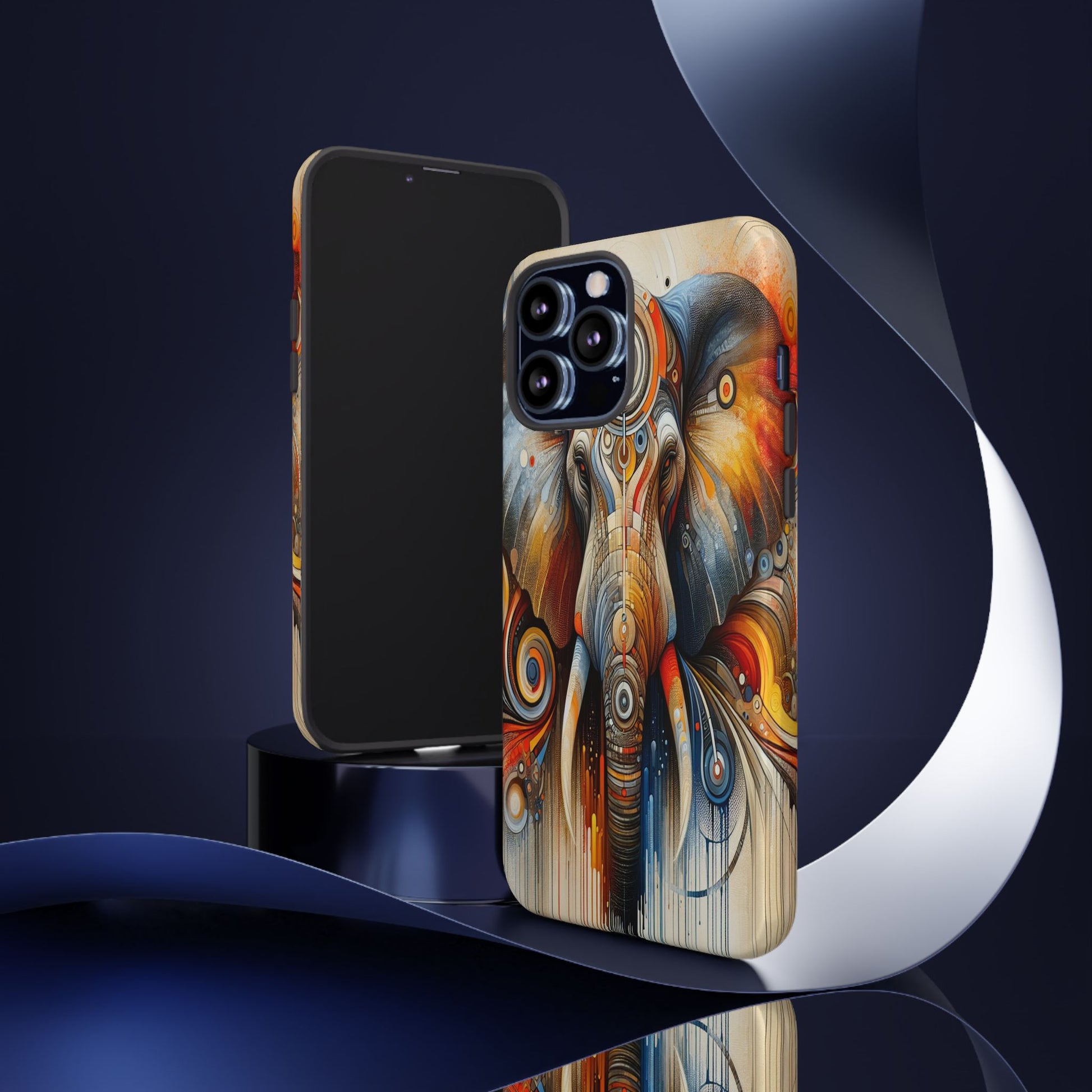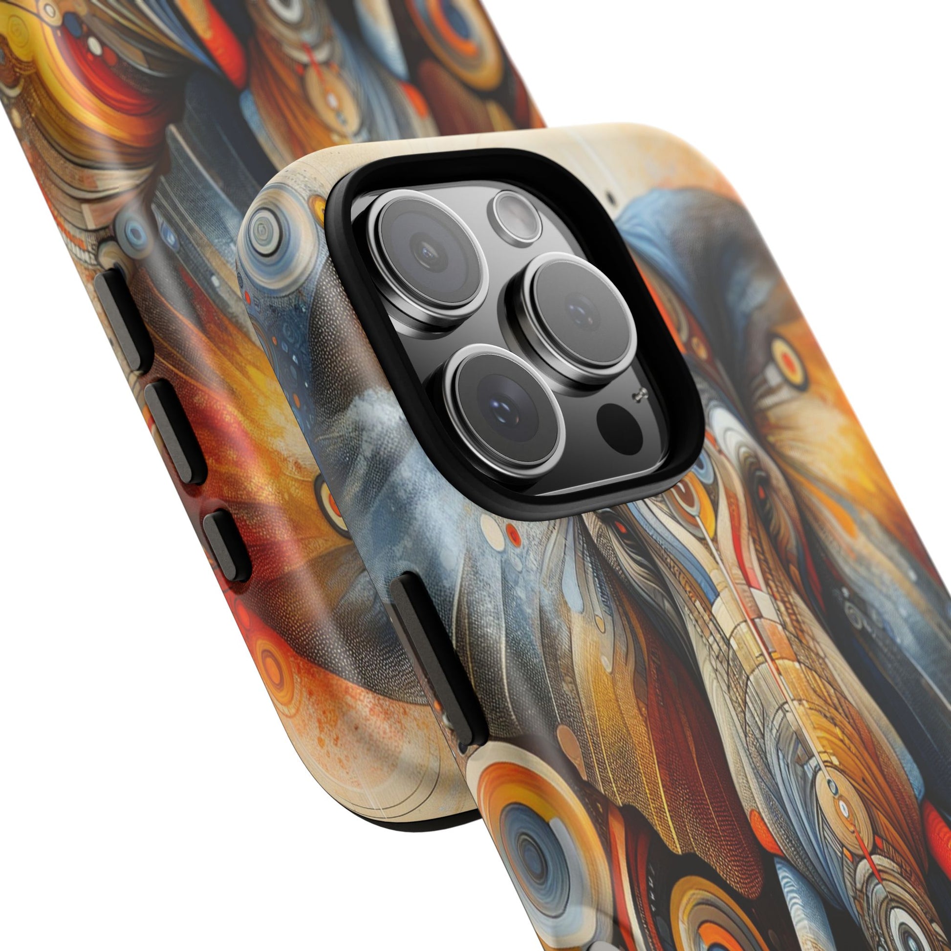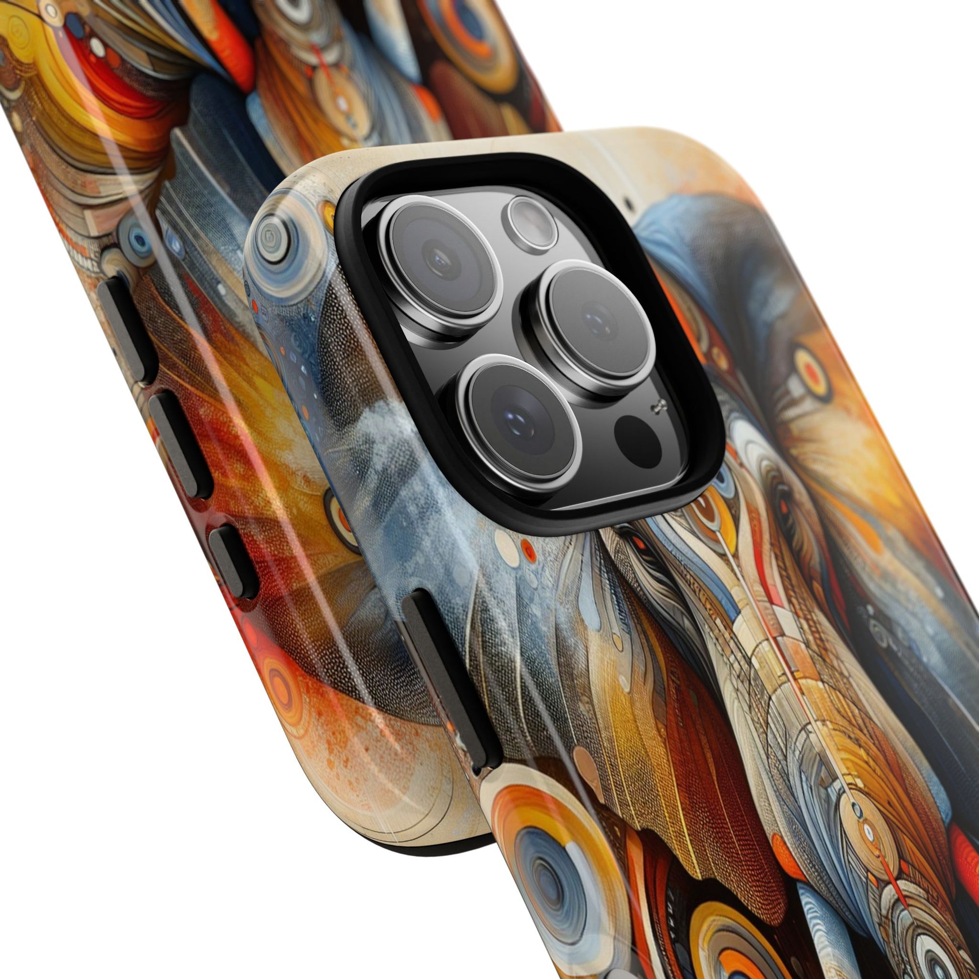 A vivid, abstract portrayal of an elephant blends geometric patterns and fluid swirls. Rich blues, oranges, and yellows create a mesmerizing mosaic, infusing energy and dynamic movement into the majestic creature’s form. iPhone, Samsung Galaxy, and Google Pixel devices with premium-quality custom protective phone cases. Every case has double layers for extra durability and protection while the clear, open ports stay out of your way when it comes to charging. The outer polycarbonate shell will resist daily impacts. Choose between matte or glossy finish and enjoy adding a unique touch to your phone with our custom protective phone cases sourced from Korea.