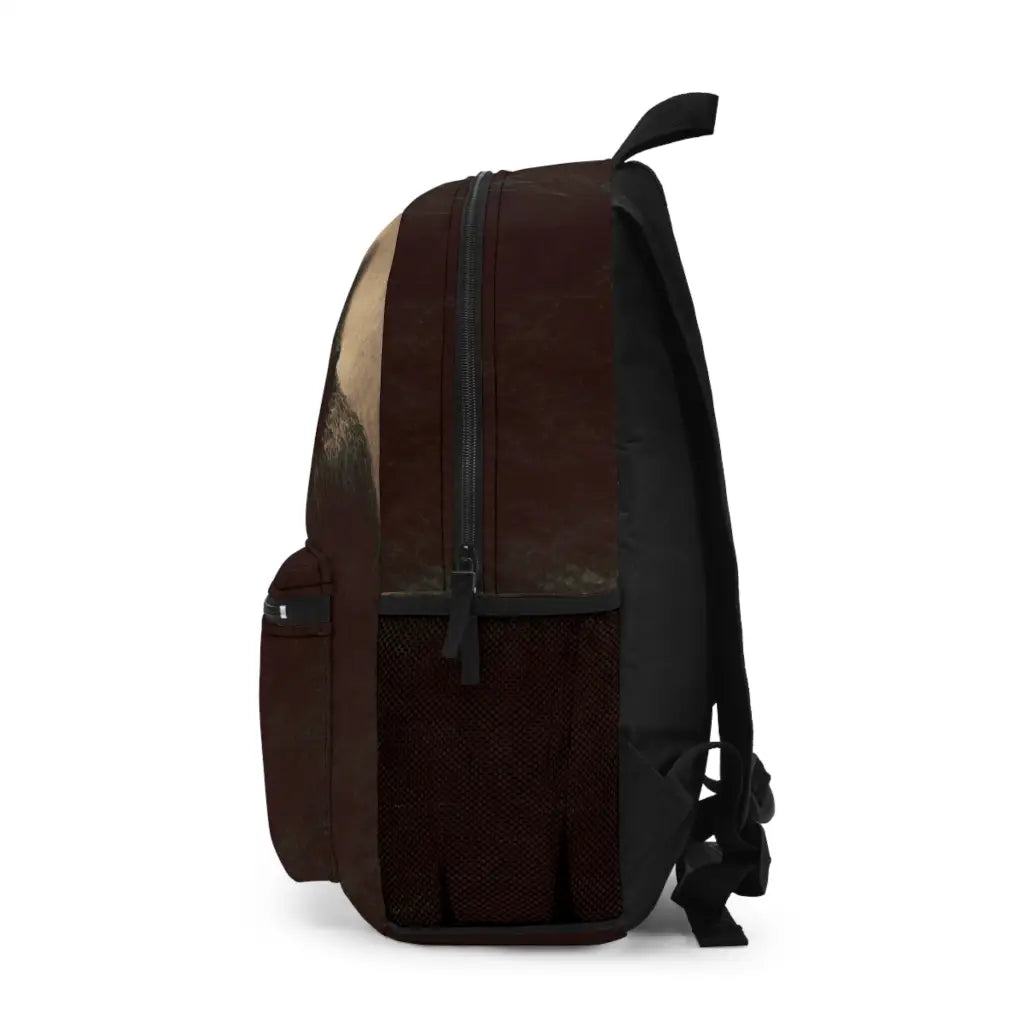 A shadowy, cloaked figure stands amidst a misty backdrop, evoking mystery and intrigue. The blurred outlines create a sense of movement, while the dark tones and ethereal atmosphere suggest an enigmatic narrative waiting to unfold. Introducing the ultimate backpack for fashion-forward adventurers! Our backpack boasts a striking textile design that will make a statement wherever you go. With its durable construction and spacious compartments, it is perfect for carrying all your essentials. Get ready to turn heads and stay organized with our backpack. #textiledesign #backpack #fashionforward #adventure #durable #spacious #statementpiece #organized #essentials #travel #explore