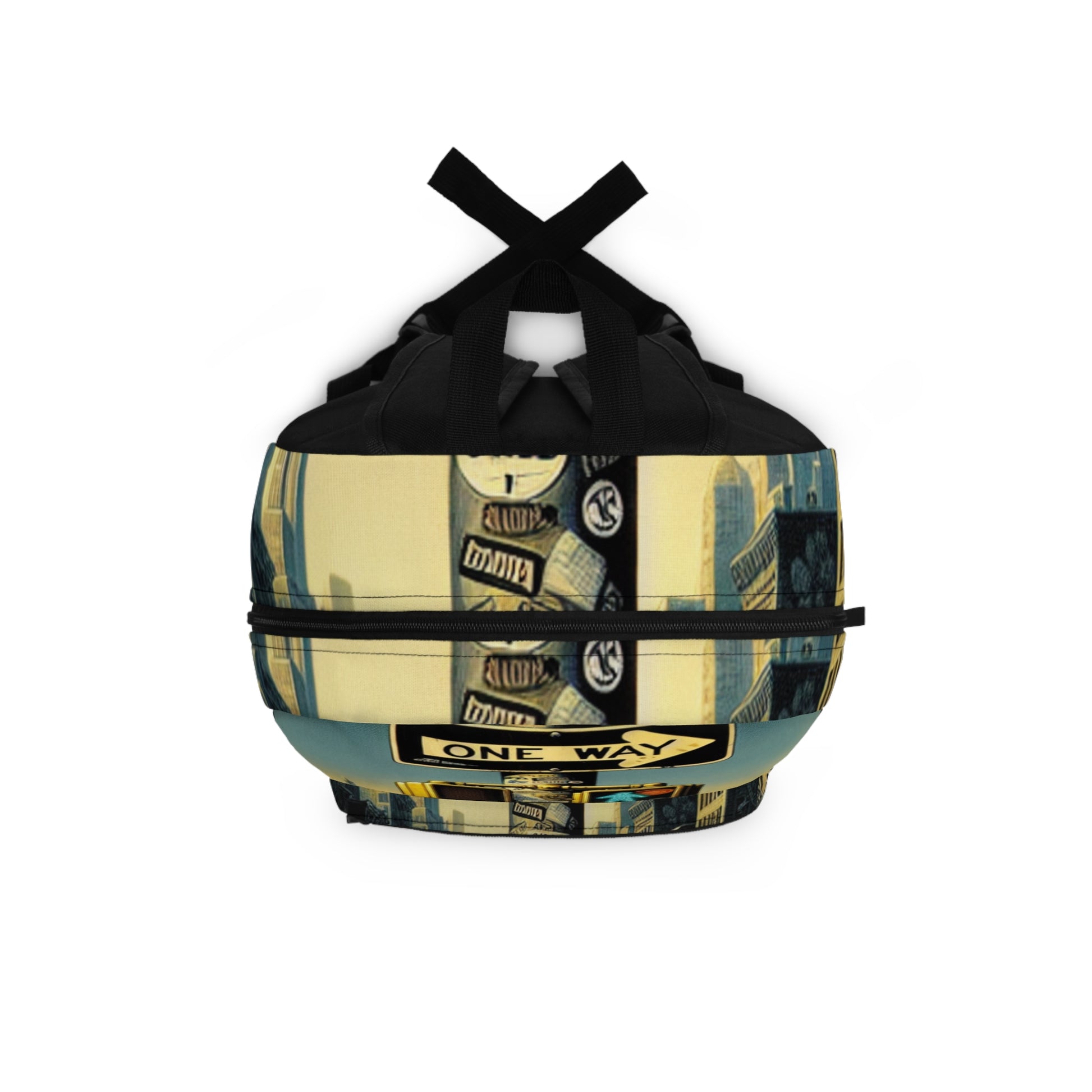 Urban symphony: A one-way street sign stands amidst a tapestry of stickers and graffiti on a busy corner. The sunlight casts warm hues on the eclectic mix of art and urban life, encapsulating the vibrancy and spontaneity of a city's pulse. Introducing the ultimate backpack for fashion-forward adventurers! Our backpack boasts a striking textile design that will make a statement wherever you go. With its durable construction and spacious compartments, it is perfect for carrying all your essentials. Get ready to turn heads and stay organized with our backpack. #textiledesign #backpack #fashionforward #adventure #durable #spacious #statementpiece #organized #essentials #travel #explore