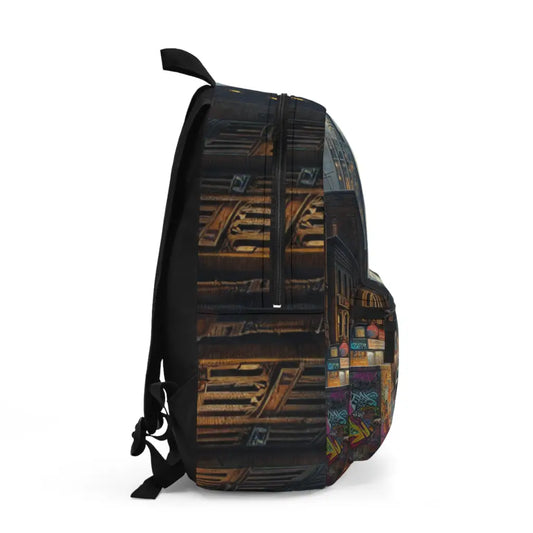 Narrow Alleyway with Sticker-Covered Wall - Backpack