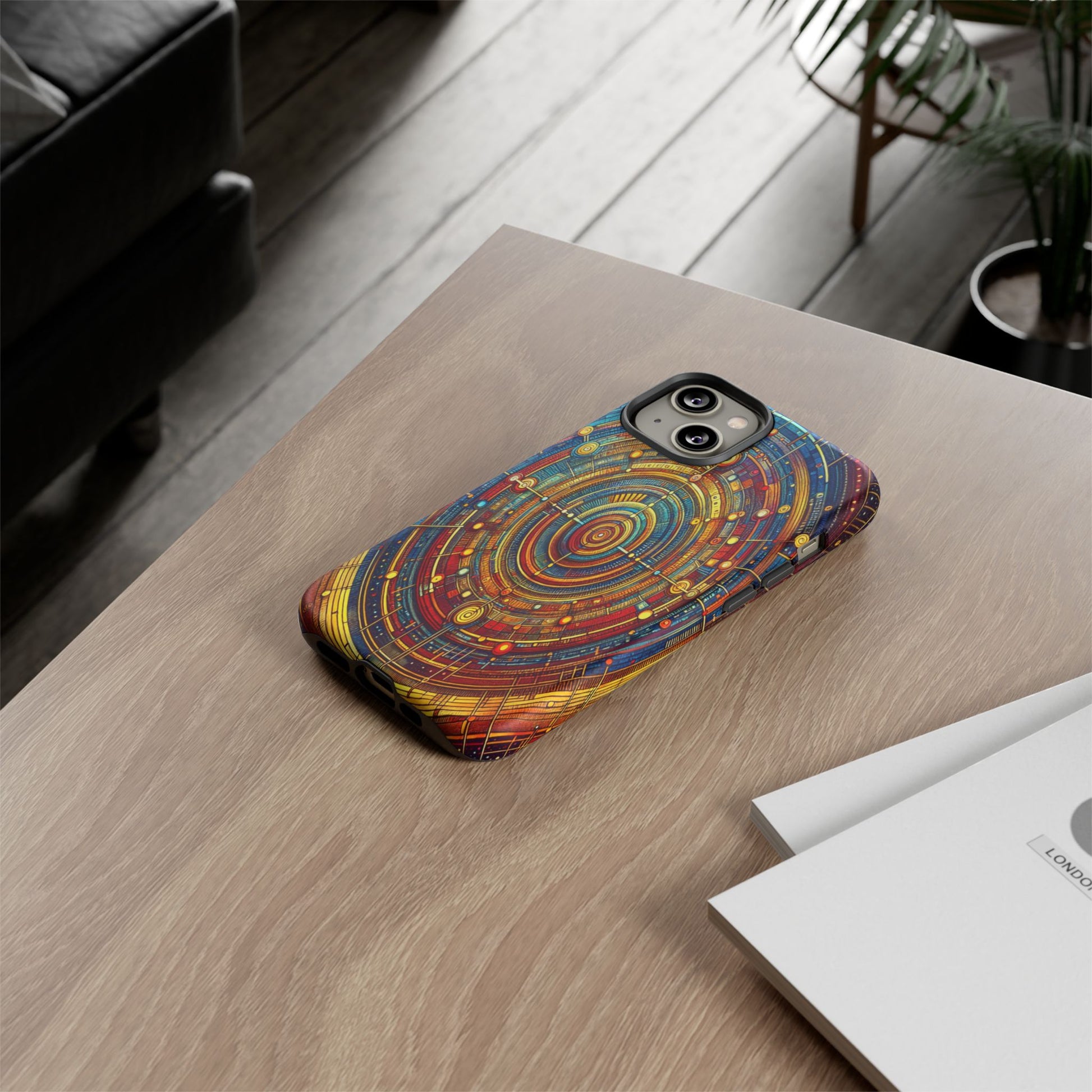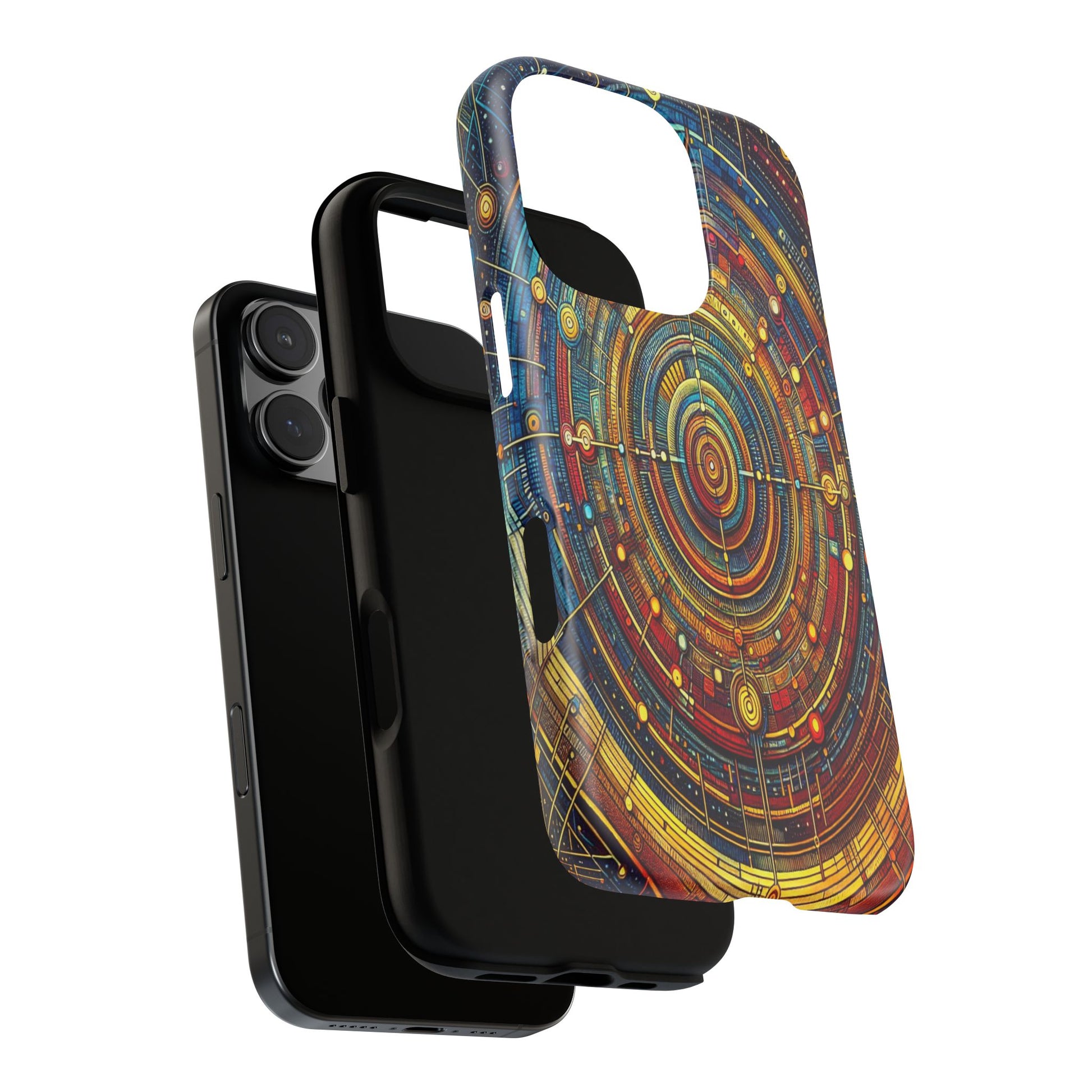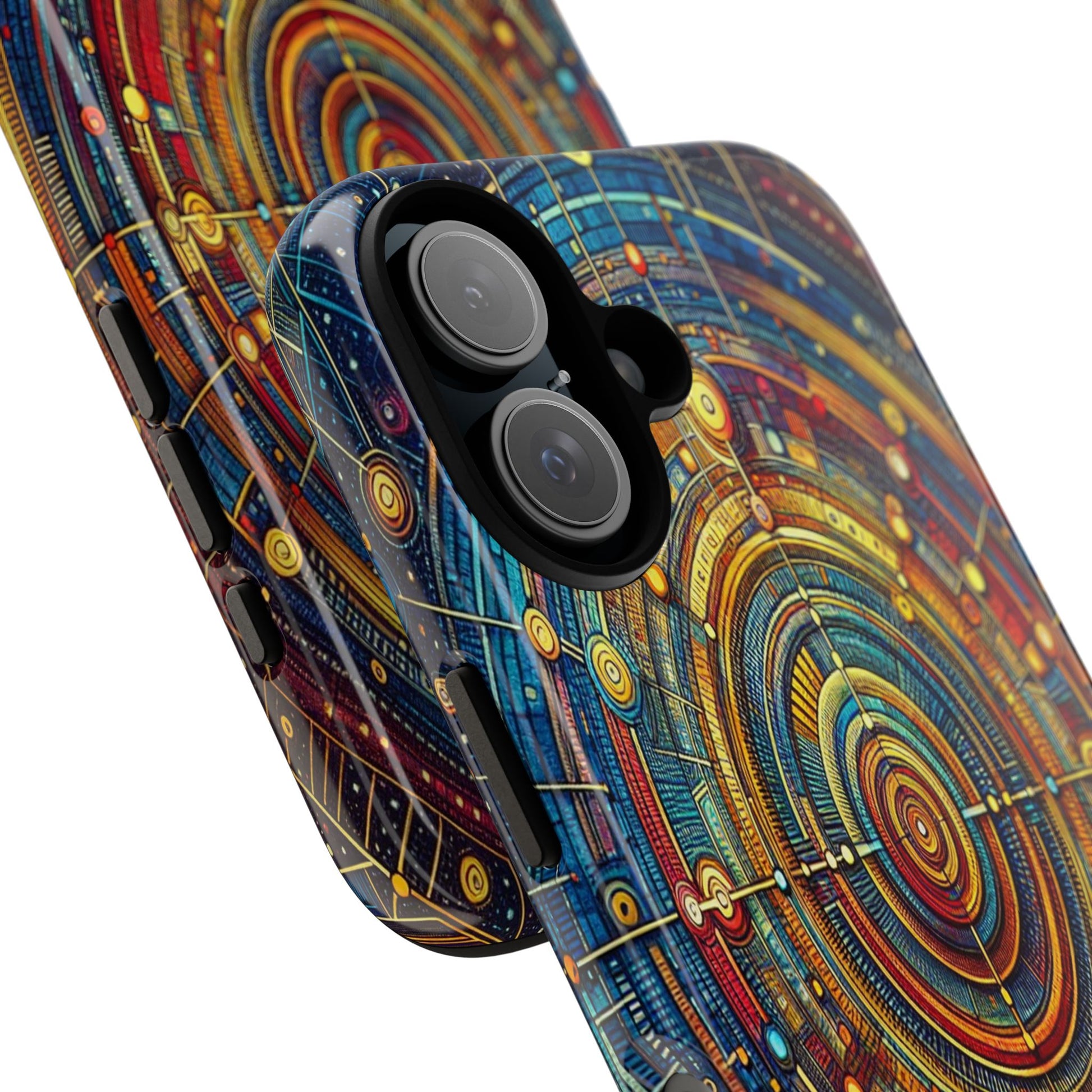 A mesmerizing mandala of intricate, interlocking geometric patterns in vibrant hues of blue, red, and gold. This digital fusion of celestial mechanics and abstract art radiates energy and complexity, evoking a cosmic clockwork or futuristic circuit. iPhone, Samsung Galaxy, and Google Pixel devices with premium-quality custom protective phone cases. Every case has double layers for extra durability and protection while the clear, open ports stay out of your way when it comes to charging. The outer polycarbonate shell will resist daily impacts. Choose between matte or glossy finish and enjoy adding a unique touch to your phone with our custom protective phone cases sourced from Korea.