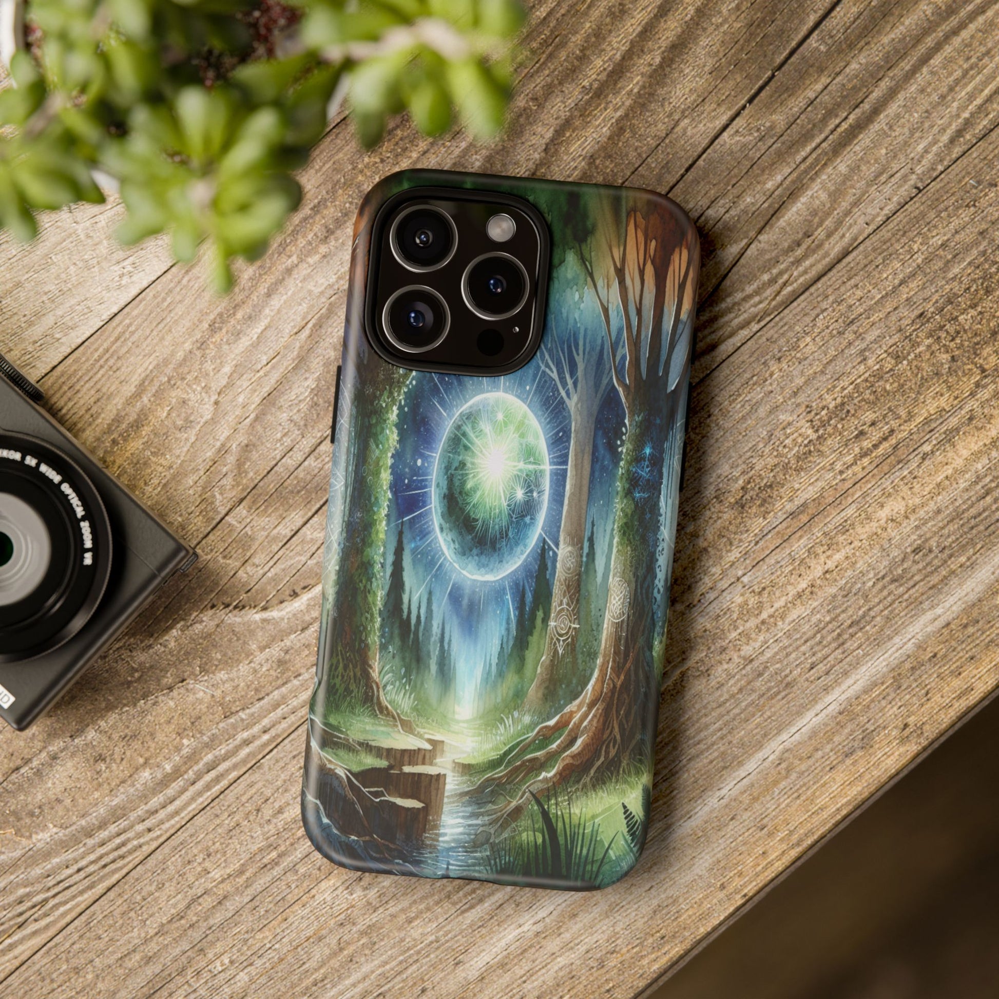 In this ethereal watercolor, a mystical forest reveals a luminescent orb suspended in starlit skies, surrounded by grand trees etched with ancient runes, blending fantasy and nature seamlessly. iPhone, Samsung Galaxy, and Google Pixel devices with premium-quality custom protective phone cases. Every case has double layers for extra durability and protection while the clear, open ports stay out of your way when it comes to charging. The outer polycarbonate shell will resist daily impacts. Choose between matte or glossy finish and enjoy adding a unique touch to your phone with our custom protective phone cases sourced from Korea.