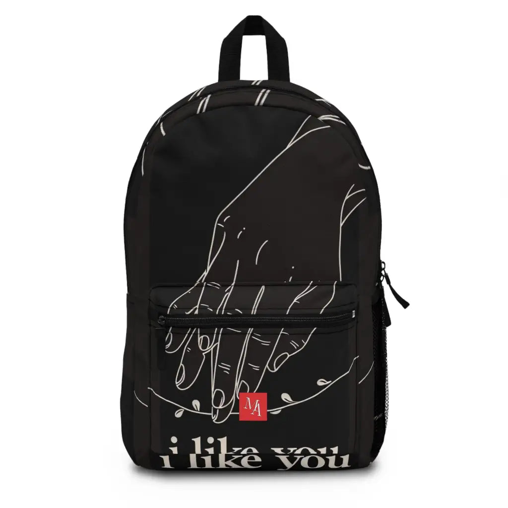 Minimalist illustration of two hands intertwined, outlined in white against a black background, conveys a gentle intimacy. Beneath, the simple text "i like you" adds a heartfelt, personal touch, enhancing the image’s theme of connection and affection. Introducing the ultimate backpack for fashion-forward adventurers! Our backpack boasts a striking textile design that will make a statement wherever you go. With its durable construction and spacious compartments, it is perfect for carrying all your essentials. Get ready to turn heads and stay organized with our backpack. #textiledesign #backpack #fashionforward #adventure #durable #spacious #statementpiece #organized #essentials #travel #explore