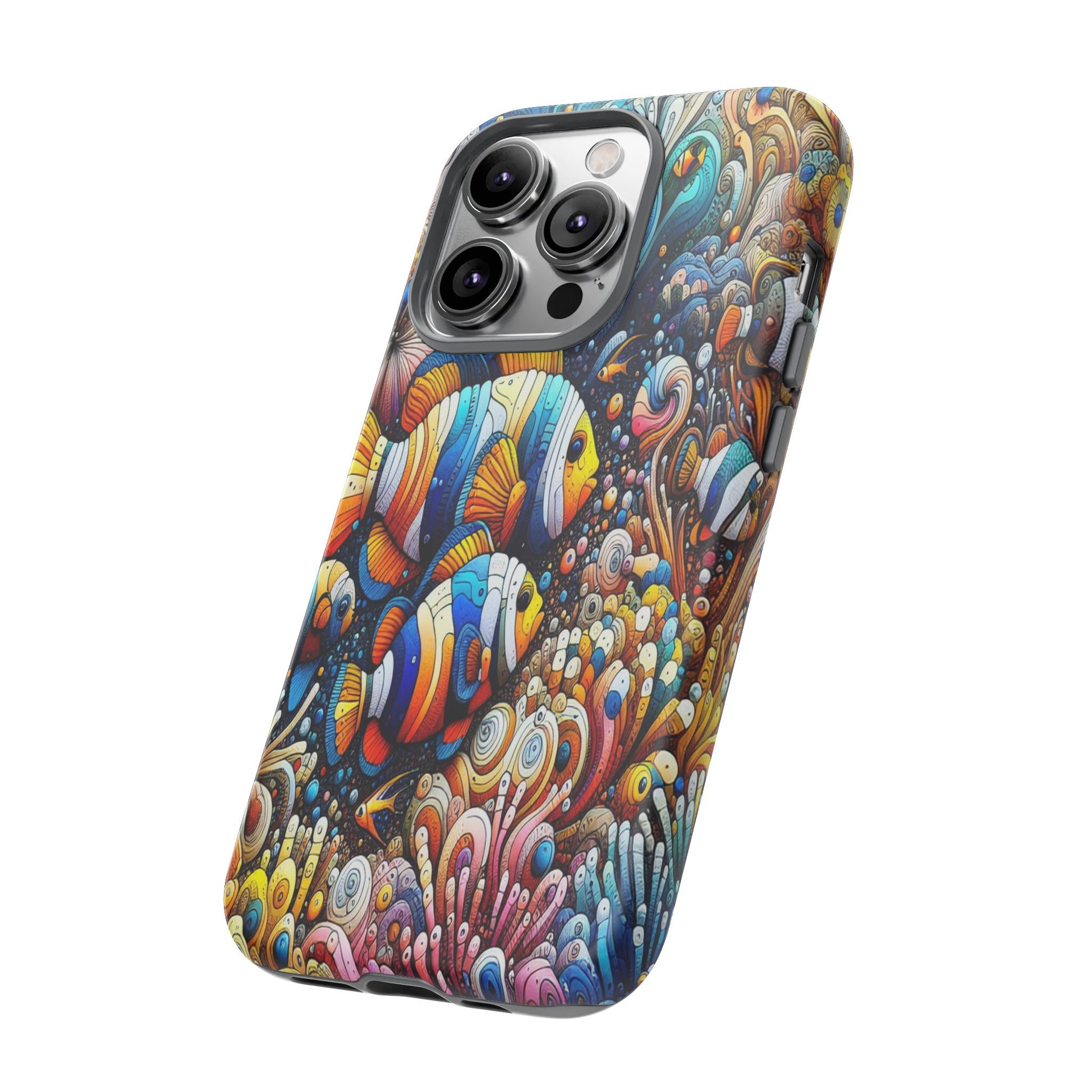 This vibrant underwater scene bursts with intricate patterns and swirling forms, showcasing clownfish amidst a psychedelic coral maze. The vivid blues, oranges, and pinks create a dynamic, whimsical composition that feels both fantastical and alive. iPhone, Samsung Galaxy, and Google Pixel devices with premium-quality custom protective phone cases. Every case has double layers for extra durability and protection while the clear, open ports stay out of your way when it comes to charging. The outer polycarbonate shell will resist daily impacts. Choose between matte or glossy finish and enjoy adding a unique touch to your phone with our custom protective phone cases sourced from Korea.