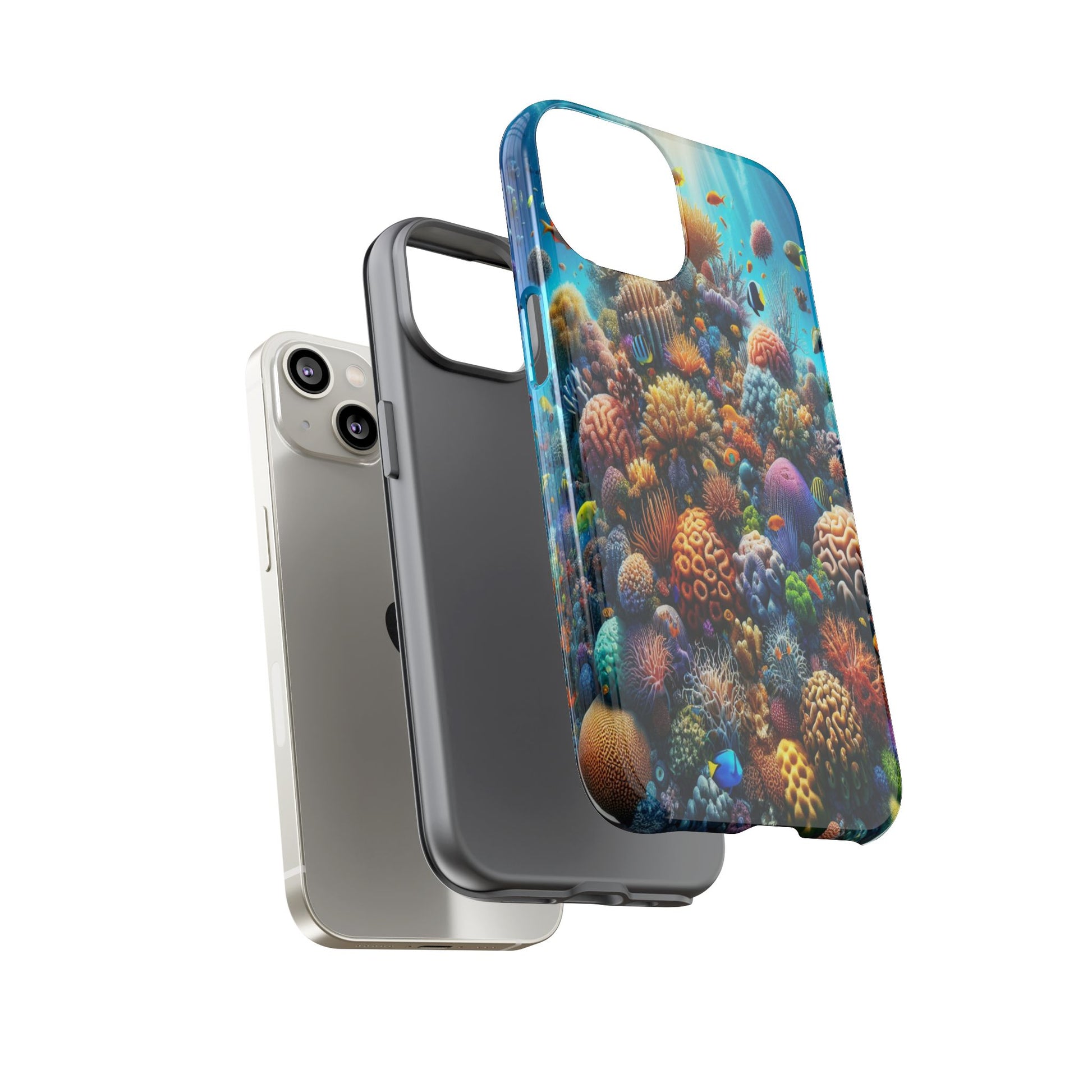 A vibrant underwater scene teeming with diverse coral formations and colorful fish, illuminated by beams of sunlight filtering through the water, creating a mesmerizing, dreamlike spectacle celebrating oceanic life. iPhone, Samsung Galaxy, and Google Pixel devices with premium-quality custom protective phone cases. Every case has double layers for extra durability and protection while the clear, open ports stay out of your way when it comes to charging. The outer polycarbonate shell will resist daily impacts. Choose between matte or glossy finish and enjoy adding a unique touch to your phone with our custom protective phone cases sourced from Korea.