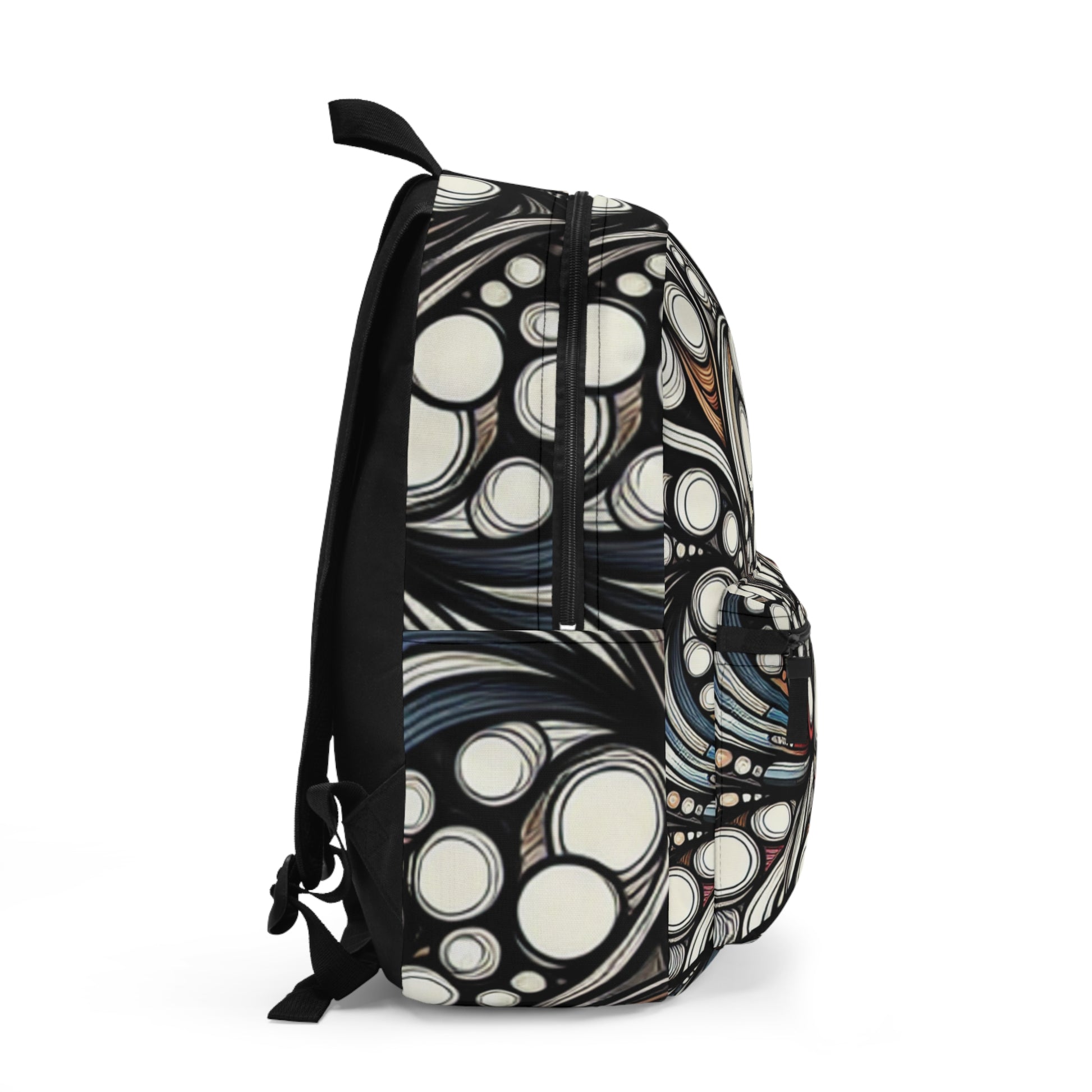 A captivating abstract composition of swirling lines and nested ovals, punctuated by subtle hues of red and blue. The intricate patterns create a sense of fluid motion and depth, evoking a sense of wonder and complexity within a harmonious design. Introducing the ultimate backpack for fashion-forward adventurers! Our backpack boasts a striking textile design that will make a statement wherever you go. With its durable construction and spacious compartments, it is perfect for carrying all your essentials. Get ready to turn heads and stay organized with our backpack. #textiledesign #backpack #fashionforward #adventure #durable #spacious #statementpiece #organized #essentials #travel #explore