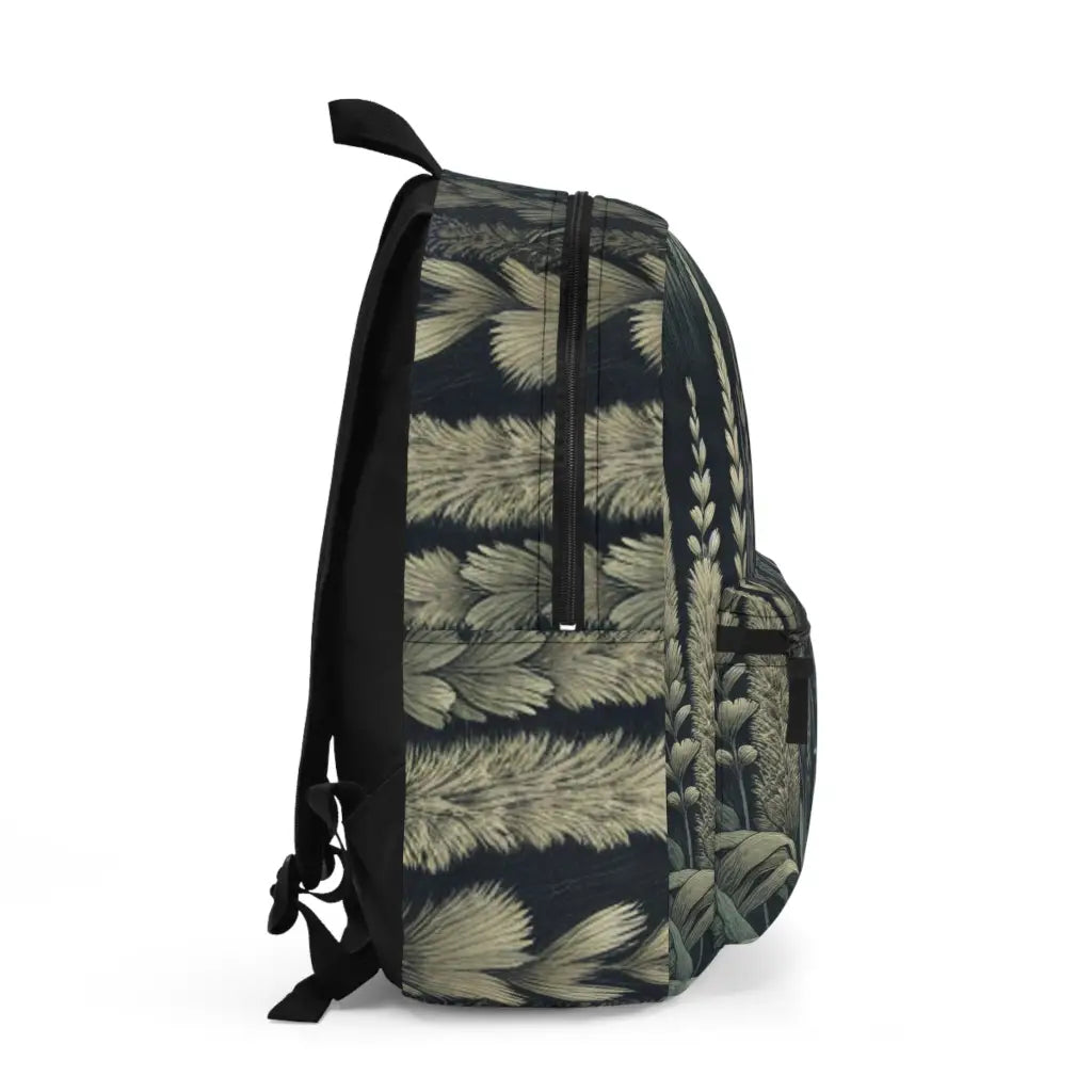 Tall, slender stalks create a delicate meadow, gently reaching upward against a rich, charcoal backdrop. The monochrome palette enhances the minimalist elegance, inviting contemplation and a sense of serene isolation. Introducing the ultimate backpack for fashion-forward adventurers! Our backpack boasts a striking textile design that will make a statement wherever you go. With its durable construction and spacious compartments, it is perfect for carrying all your essentials. Get ready to turn heads and stay organized with our backpack. #textiledesign #backpack #fashionforward #adventure #durable #spacious #statementpiece #organized #essentials #travel #explore