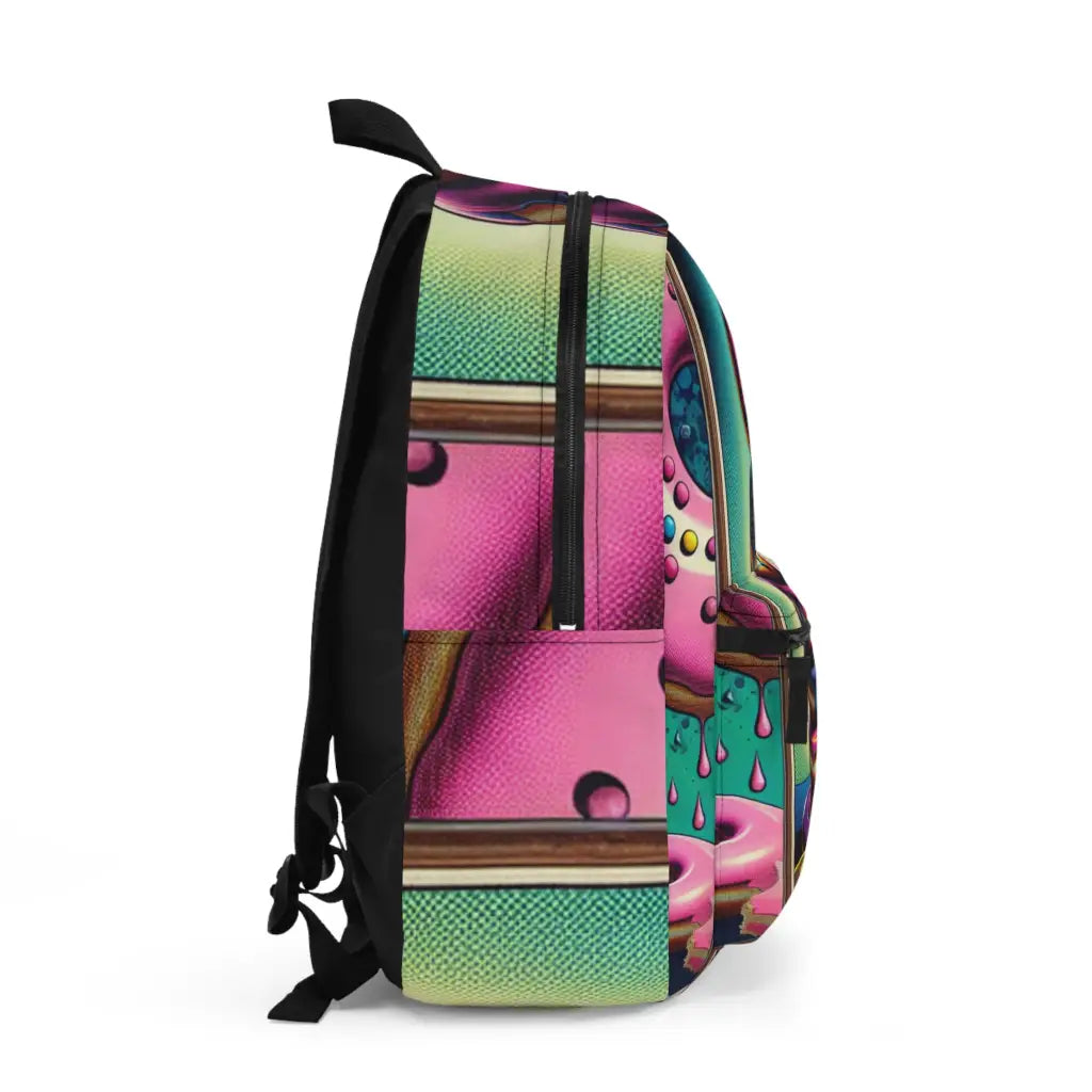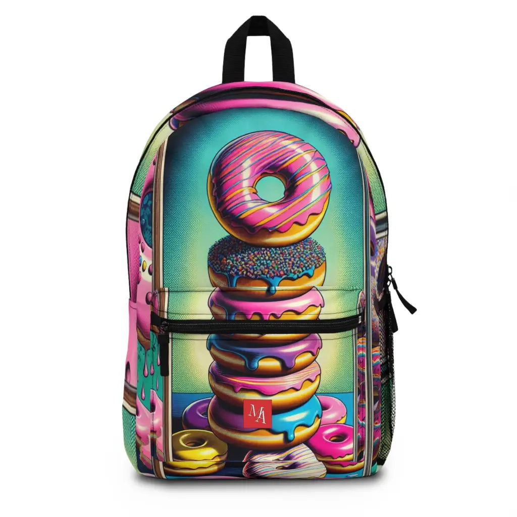 This image features vibrant, framed donut art with dripping colors and a graffiti-style backdrop. The playful chaos of stacked and scattered pastries creates a deliciously surreal and visually compelling scene, blending realism with abstract, urban aesthetics. Introducing the ultimate backpack for fashion-forward adventurers! Our backpack boasts a striking textile design that will make a statement wherever you go. With its durable construction and spacious compartments, it is perfect for carrying all your essentials. Get ready to turn heads and stay organized with our backpack. #textiledesign #backpack #fashionforward #adventure #durable #spacious #statementpiece #organized #essentials #travel #explore
