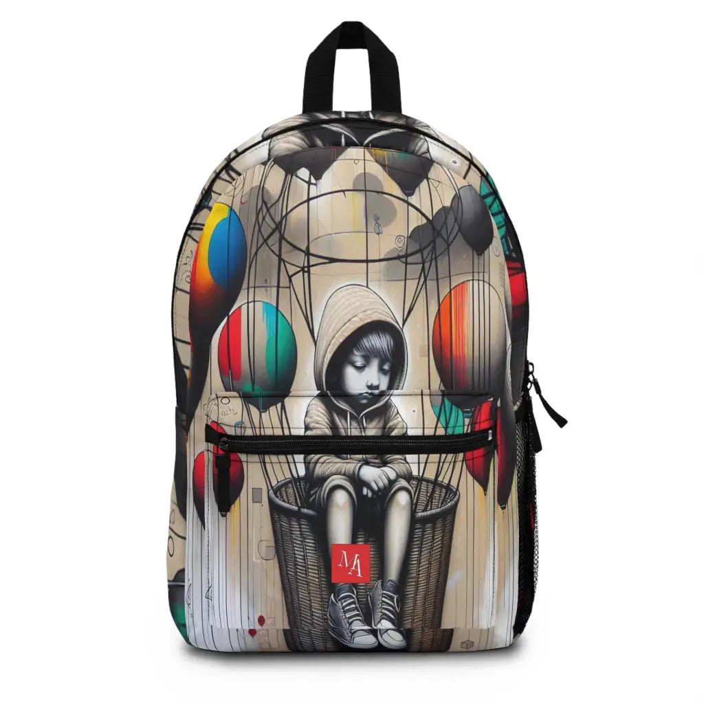 This mural showcases a somber child sitting in a hot air balloon basket, surrounded by vibrant, geometric balloons. The fusion of grayscale with splashes of bold colors creates a dynamic contrast, emphasizing emotion and creativity against a structured, urban backdrop. Introducing the ultimate backpack for fashion-forward adventurers! Our backpack boasts a striking textile design that will make a statement wherever you go. With its durable construction and spacious compartments, it is perfect for carrying all your essentials. Get ready to turn heads and stay organized with our backpack. #textiledesign #backpack #fashionforward #adventure #durable #spacious #statementpiece #organized #essentials #travel #explore