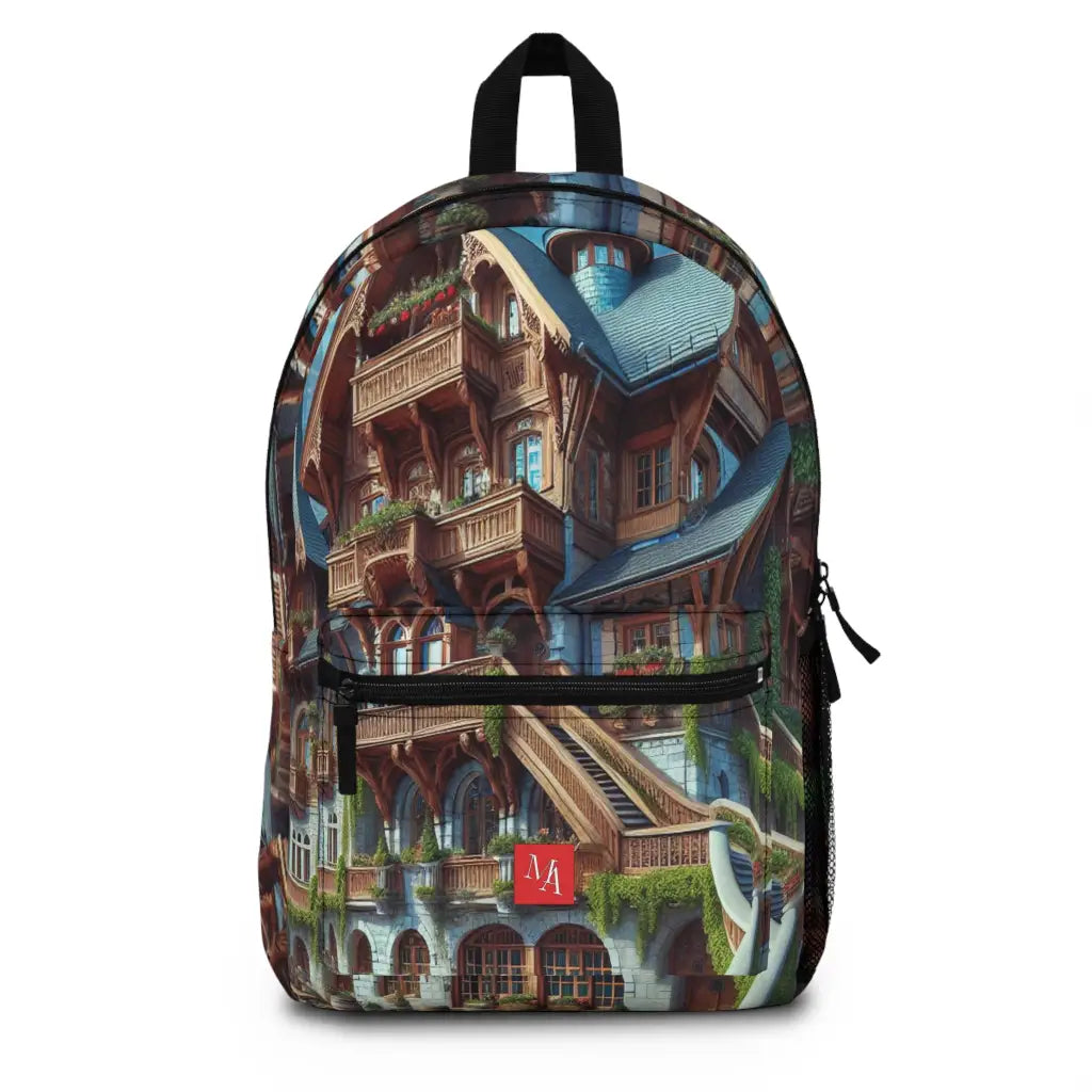 A stunning alpine chalet with intricate wooden architecture, lush greenery, and vibrant flower boxes, set against a backdrop of majestic snow-capped mountains. Elegant stonework and cascading stairs enhance its fairy-tale allure, creating a seamless blend of natural beauty and architectural artistry. Introducing the ultimate backpack for fashion-forward adventurers! Our backpack boasts a striking textile design that will make a statement wherever you go. With its durable construction and spacious compartments, it is perfect for carrying all your essentials. Get ready to turn heads and stay organized with our backpack. #textiledesign #backpack #fashionforward #adventure #durable #spacious #statementpiece #organized #essentials #travel #explore