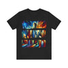 A vibrant cityscape bursts with color and abstract forms, merging geometric lines and vivid hues. This dynamic artwork transforms urban architecture into a mesmerizing kaleidoscope, capturing the essence of a bustling metropolis in energetic motion and creativity.. This classic unisex jersey short sleeve tee fits like a well-loved favorite. Soft cotton and quality print make users fall in love with it over and over again. These t-shirts have-ribbed knit collars to bolster shaping. The shoulders are tapered for a better fit over time. Dual side seams hold the garment's shape for longer.