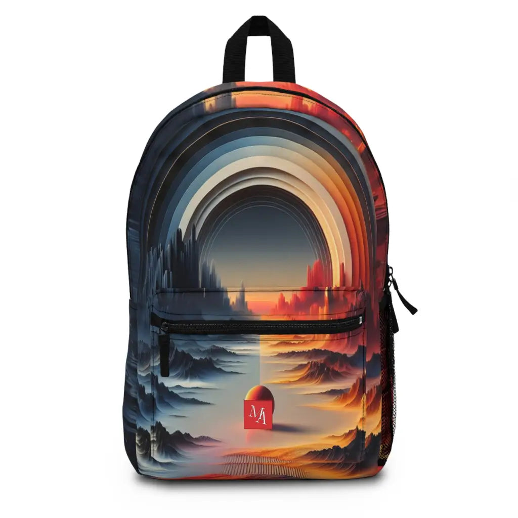 A mesmerizing fusion of vivid colors and surreal landscapes, featuring arch-like structures and a solitary sphere. The interplay of light and shadow creates a striking contrast, evoking a sense of depth and otherworldliness in this dreamlike, futuristic scene. Introducing the ultimate backpack for fashion-forward adventurers! Our backpack boasts a striking textile design that will make a statement wherever you go. With its durable construction and spacious compartments, it is perfect for carrying all your essentials. Get ready to turn heads and stay organized with our backpack. #textiledesign #backpack #fashionforward #adventure #durable #spacious #statementpiece #organized #essentials #travel #explore