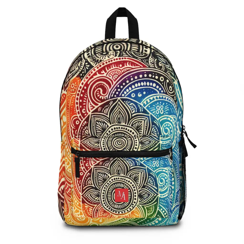 This image features a richly colored mandala with intricate patterns and a gradient transition from warm to cool tones, symbolizing balance and harmony. Introducing the ultimate backpack for fashion-forward adventurers! Our backpack boasts a striking textile design that will make a statement wherever you go. With its durable construction and spacious compartments, it is perfect for carrying all your essentials. Get ready to turn heads and stay organized with our backpack. #textiledesign #backpack #fashionforward #adventure #durable #spacious #statementpiece #organized #essentials #travel #explore