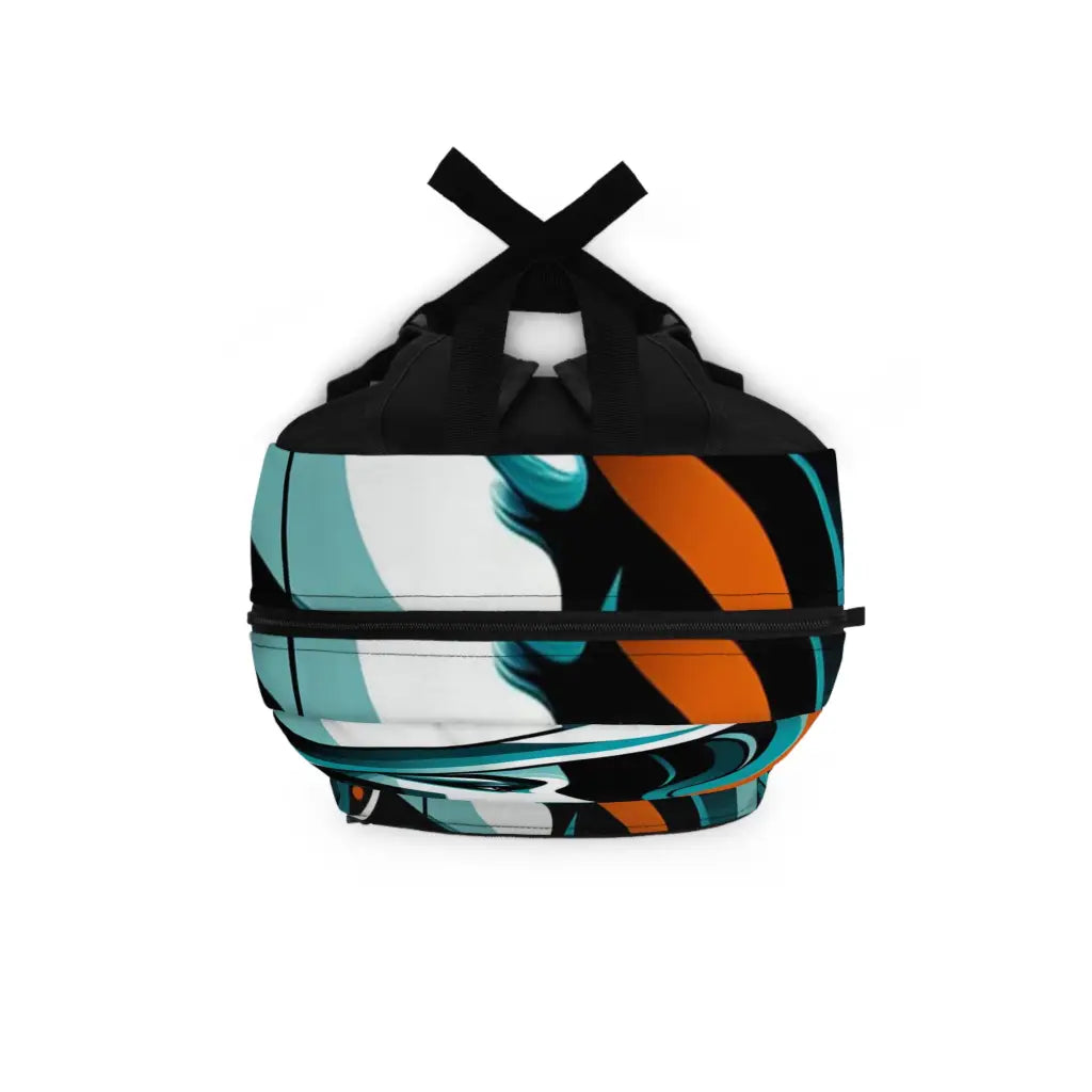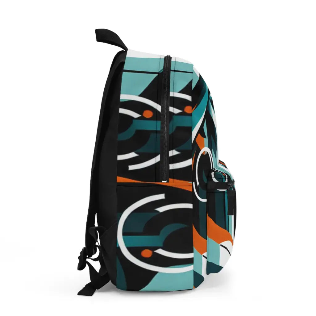 Vivid and geometric, this digital artwork combines bold teal, orange, and white hues. A stylized woman in a wide-brim hat juxtaposes with a dynamic cityscape, embodying a fusion of elegance and urban energy. Introducing the ultimate backpack for fashion-forward adventurers! Our backpack boasts a striking textile design that will make a statement wherever you go. With its durable construction and spacious compartments, it is perfect for carrying all your essentials. Get ready to turn heads and stay organized with our backpack. #textiledesign #backpack #fashionforward #adventure #durable #spacious #statementpiece #organized #essentials #travel #explore