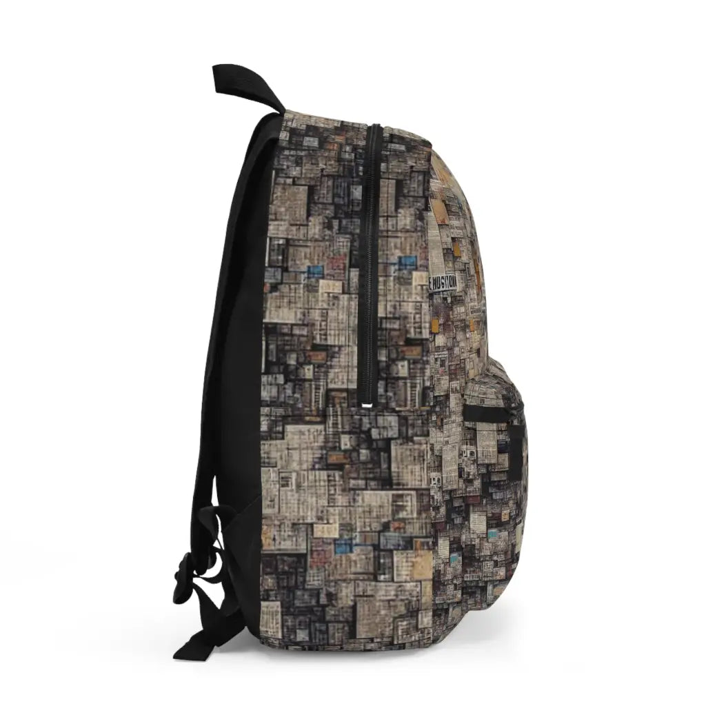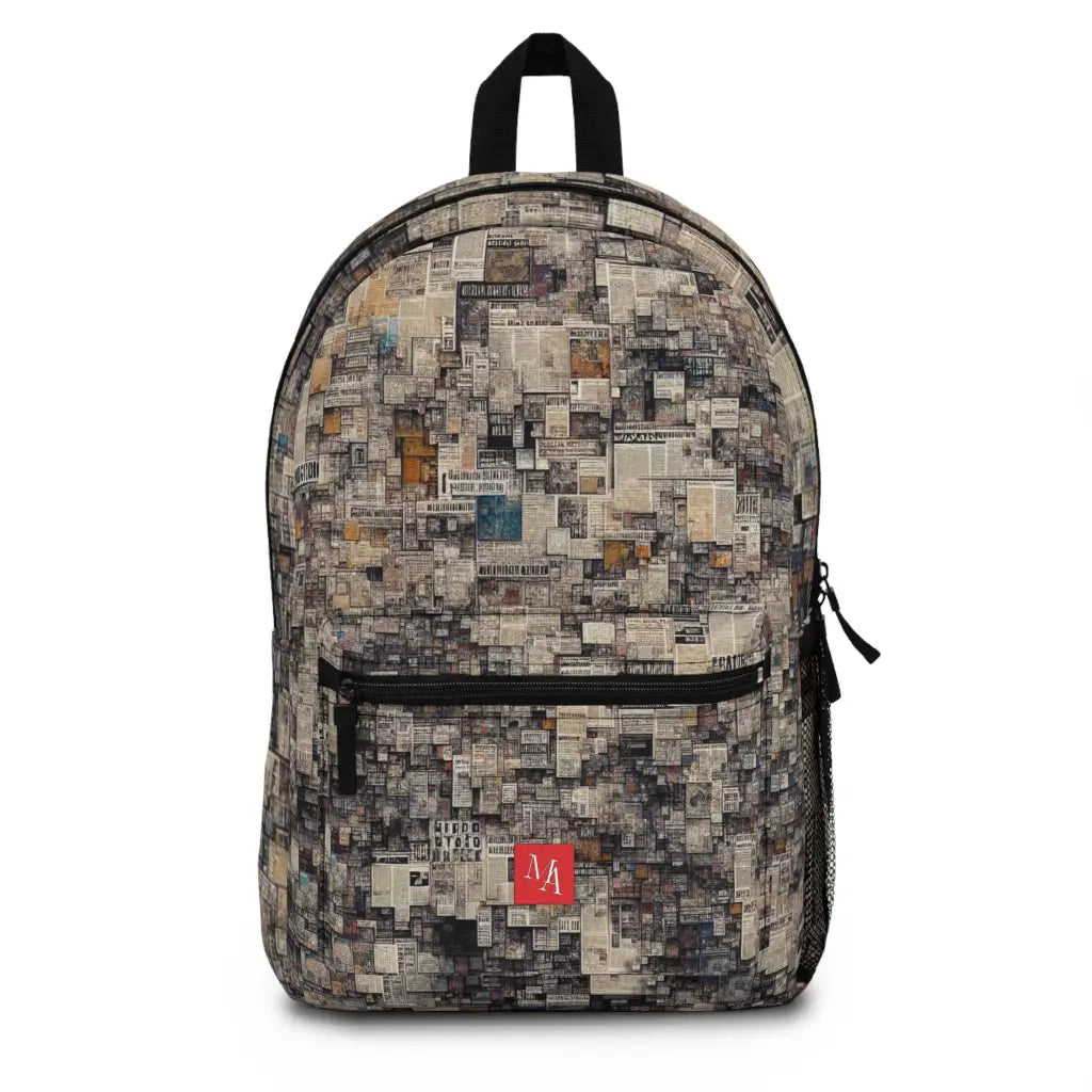 A dynamic collage of monochromatic newspaper clippings, featuring varied fonts and fragmented text. The composition creates a chaotic yet intriguing texture, blending elements of typography and abstraction, inviting viewers to explore its layers and hidden messages. Introducing the ultimate backpack for fashion-forward adventurers! Our backpack boasts a striking textile design that will make a statement wherever you go. With its durable construction and spacious compartments, it is perfect for carrying all your essentials. Get ready to turn heads and stay organized with our backpack. #textiledesign #backpack #fashionforward #adventure #durable #spacious #statementpiece #organized #essentials #travel #explore