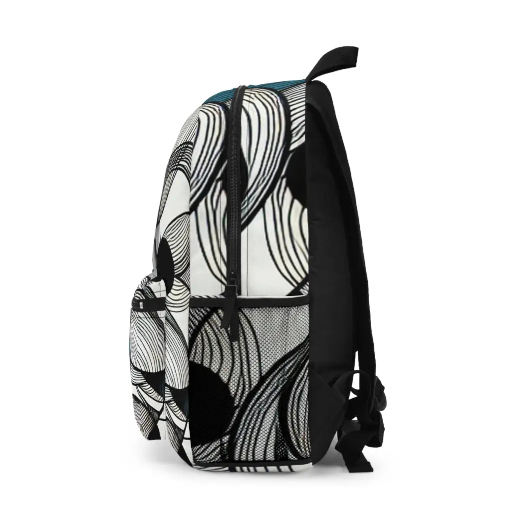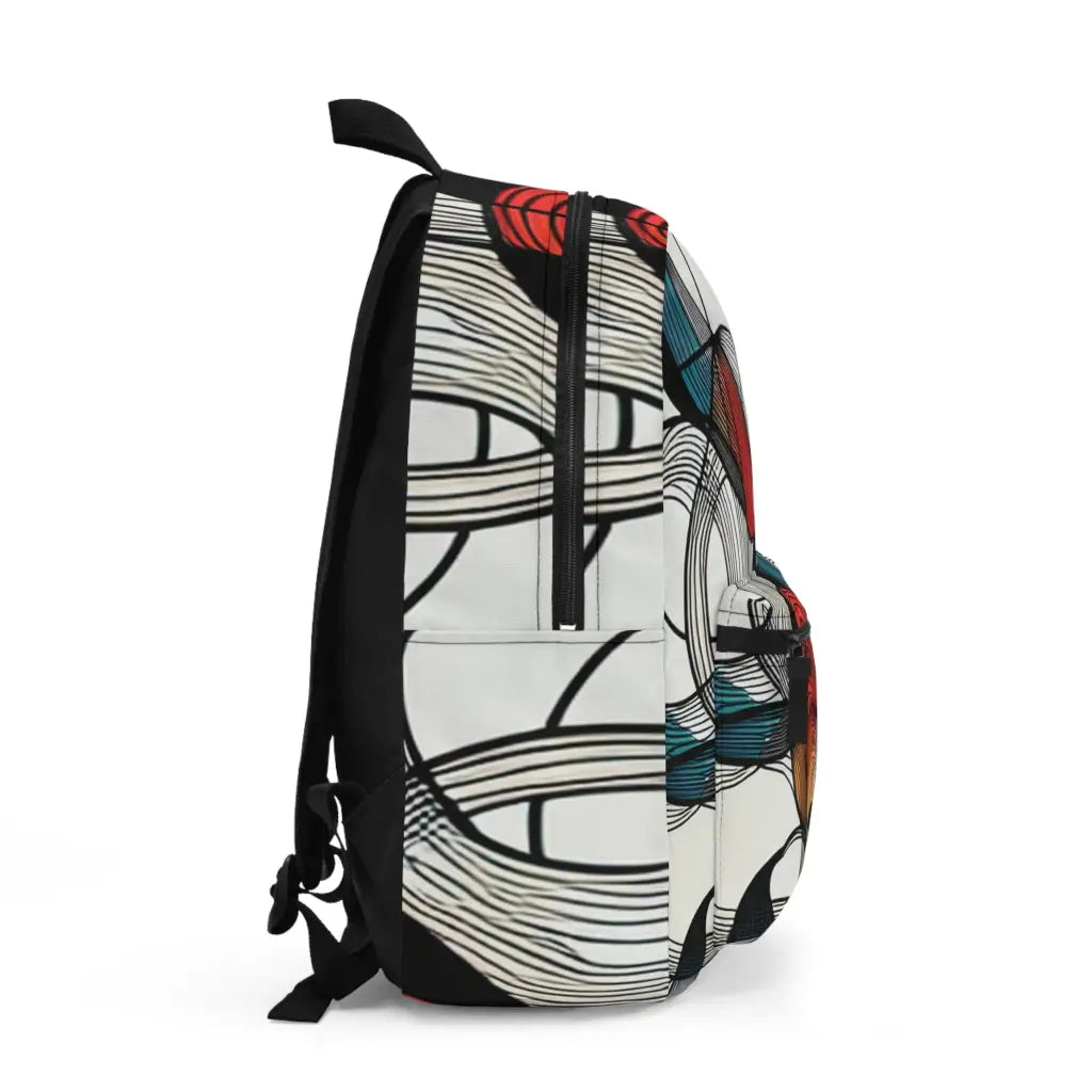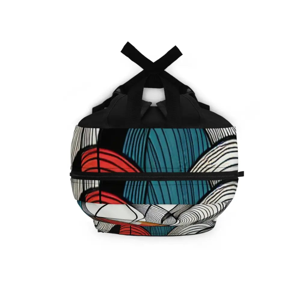 This image is a dynamic fusion of intertwining loops and vibrant colors, where intricate linework creates hypnotic movement, blending deep blues, fiery reds, and subtle oranges. The overlapping circles add depth and harmony, evoking a sense of rhythmic chaos and artistic balance. Introducing the ultimate backpack for fashion-forward adventurers! Our backpack boasts a striking textile design that will make a statement wherever you go. With its durable construction and spacious compartments, it is perfect for carrying all your essentials. Get ready to turn heads and stay organized with our backpack. #textiledesign #backpack #fashionforward #adventure #durable #spacious #statementpiece #organized #essentials #travel #explore