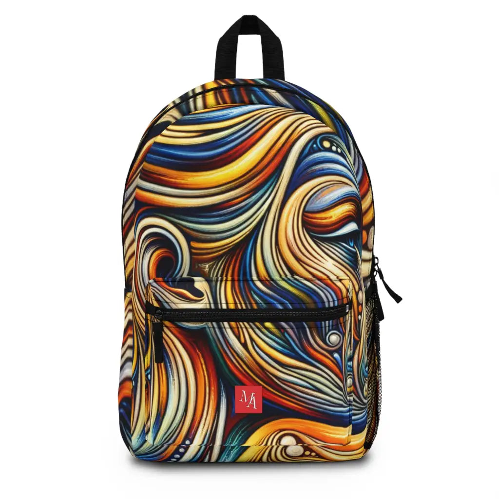A vibrant portrait blending human features with kaleidoscopic hues. The juxtaposition of monochrome and vivid colors accentuates cultural richness and individuality. Intricate patterns highlight facial contours, while bold swirls emphasize expression and imagination. Introducing the ultimate backpack for fashion-forward adventurers! Our backpack boasts a striking textile design that will make a statement wherever you go. With its durable construction and spacious compartments, it is perfect for carrying all your essentials. Get ready to turn heads and stay organized with our backpack. #textiledesign #backpack #fashionforward #adventure #durable #spacious #statementpiece #organized #essentials #travel #explore