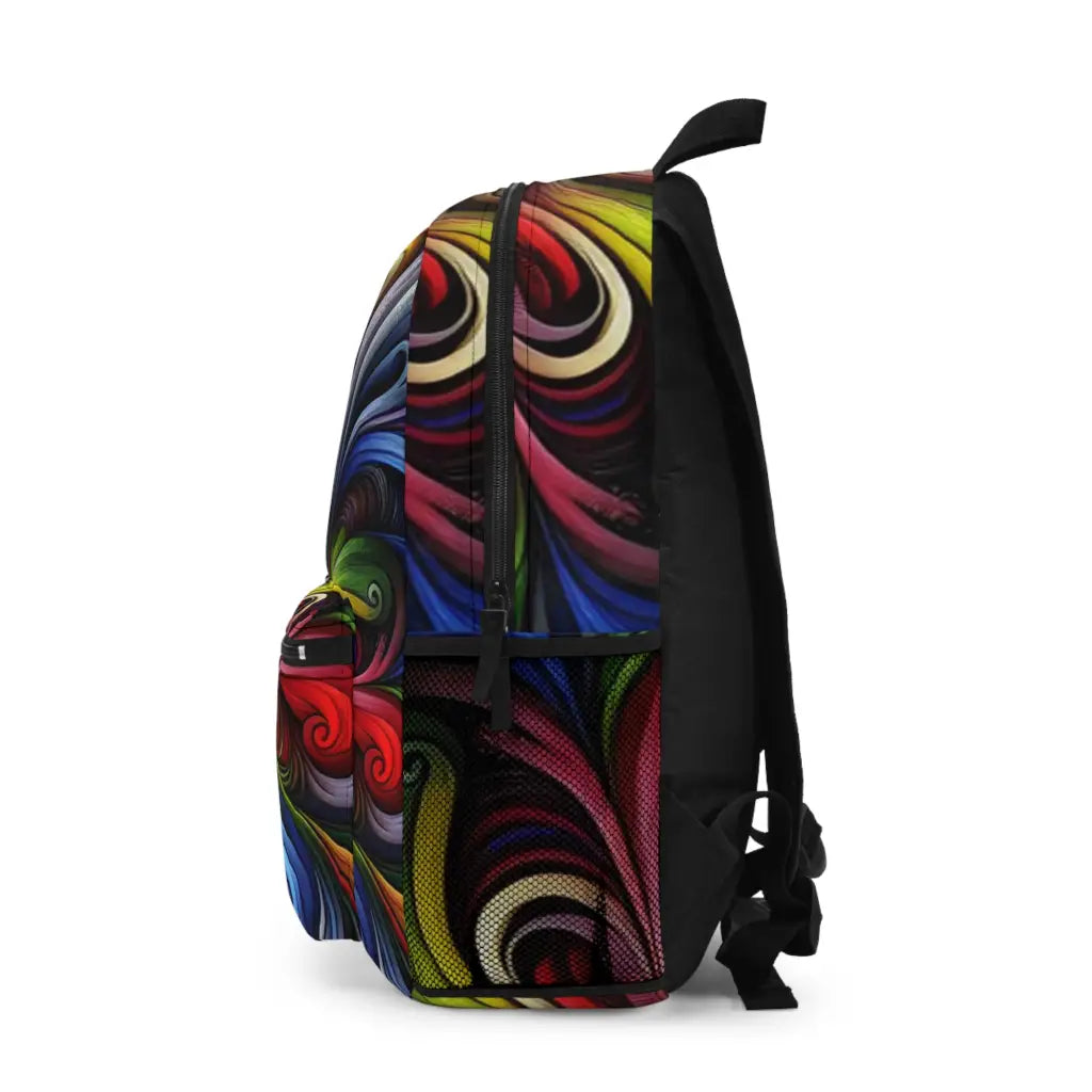 A vibrant fusion of swirling colors and intricate patterns form a mesmerizing, abstract portrait. The bold, fluid lines create a sense of movement, transforming the face into a living tapestry of imagination and emotion. Introducing the ultimate backpack for fashion-forward adventurers! Our backpack boasts a striking textile design that will make a statement wherever you go. With its durable construction and spacious compartments, it is perfect for carrying all your essentials. Get ready to turn heads and stay organized with our backpack. #textiledesign #backpack #fashionforward #adventure #durable #spacious #statementpiece #organized #essentials #travel #explore
