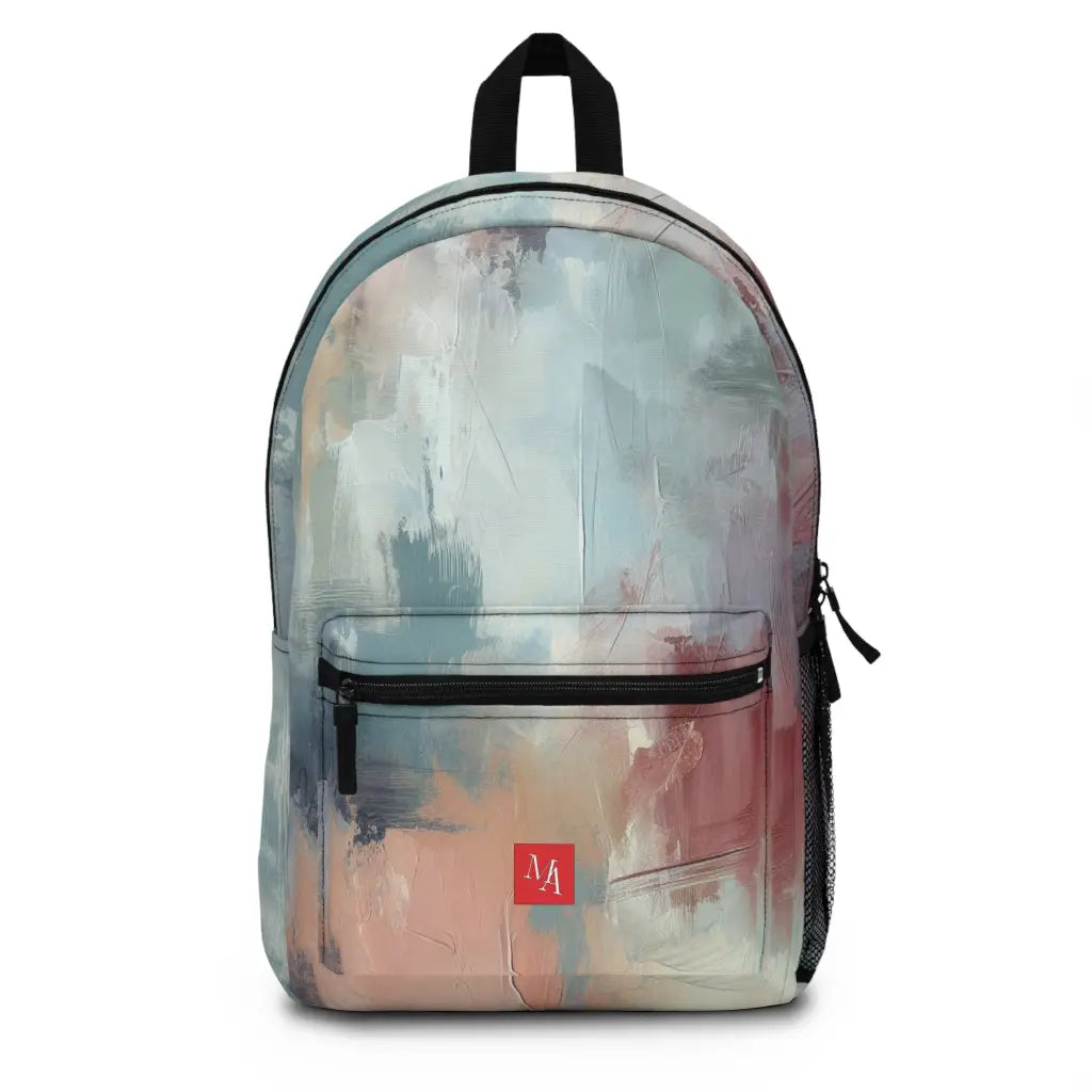This abstract painting features a harmonious blend of soft pastels and bold strokes, creating a dynamic, textured landscape. The interplay of muted blues, earthy tones, and pops of red evoke a sense of calm and movement, inviting imagination and introspection. Introducing the ultimate backpack for fashion-forward adventurers! Our backpack boasts a striking textile design that will make a statement wherever you go. With its durable construction and spacious compartments, it is perfect for carrying all your essentials. Get ready to turn heads and stay organized with our backpack. #textiledesign #backpack #fashionforward #adventure #durable #spacious #statementpiece #organized #essentials #travel #explore