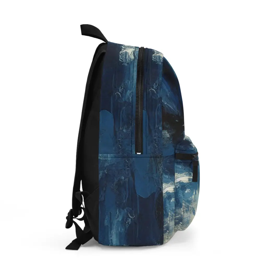 An abstract seascape, this artwork mesmerizes with textured brushstrokes in shades of blue and white, evoking turbulent skies and serene waters. The interplay of light and shadow creates a dynamic, atmospheric depth, inviting contemplation and awe. Introducing the ultimate backpack for fashion-forward adventurers! Our backpack boasts a striking textile design that will make a statement wherever you go. With its durable construction and spacious compartments, it is perfect for carrying all your essentials. Get ready to turn heads and stay organized with our backpack. #textiledesign #backpack #fashionforward #adventure #durable #spacious #statementpiece #organized #essentials #travel #explore