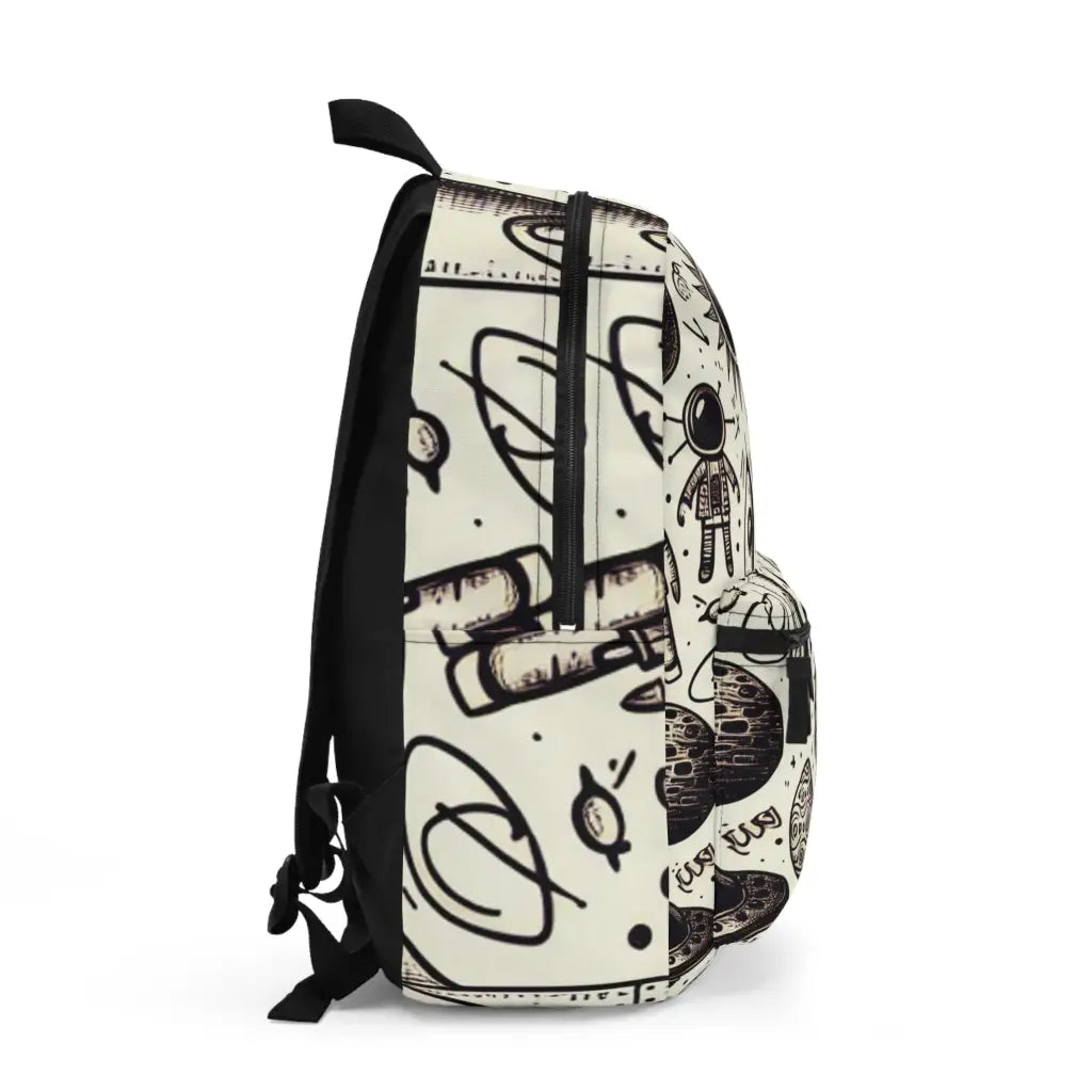 Whimsical space-themed doodles featuring rockets, astronauts, and planets create a playful, imaginative pattern. Simple line art offers an adventurous, childlike charm, set against a clean, white background. Introducing the ultimate backpack for fashion-forward adventurers! Our backpack boasts a striking textile design that will make a statement wherever you go. With its durable construction and spacious compartments, it is perfect for carrying all your essentials. Get ready to turn heads and stay organized with our backpack. #textiledesign #backpack #fashionforward #adventure #durable #spacious #statementpiece #organized #essentials #travel #explore